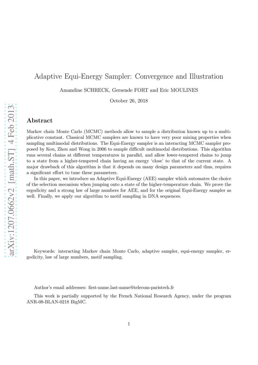 Adaptive Equi-Energy Sampler : Convergence and Illustration