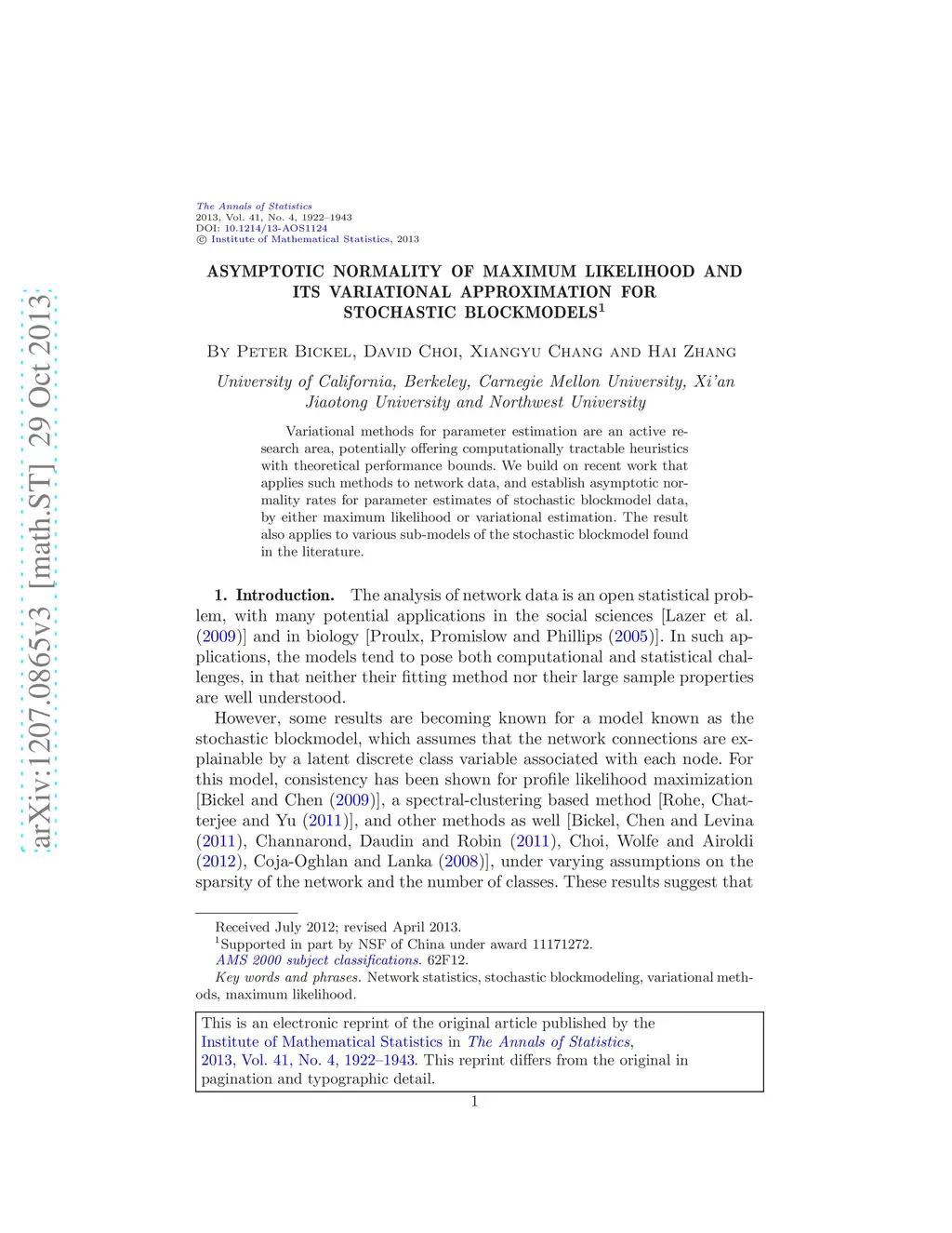Variational methods for parameter estimation are an active research area, potentially offering computationally tractable heuristics with theoretical performance bounds. We build on recent work that applies such methods to network data, and establish asymptotic normality rates for parameter estimates of stochastic blockmodel data, by either maximum likelihood or variational estimation. The result also applies to various sub-models of the stochastic blockmodel found in the literature.