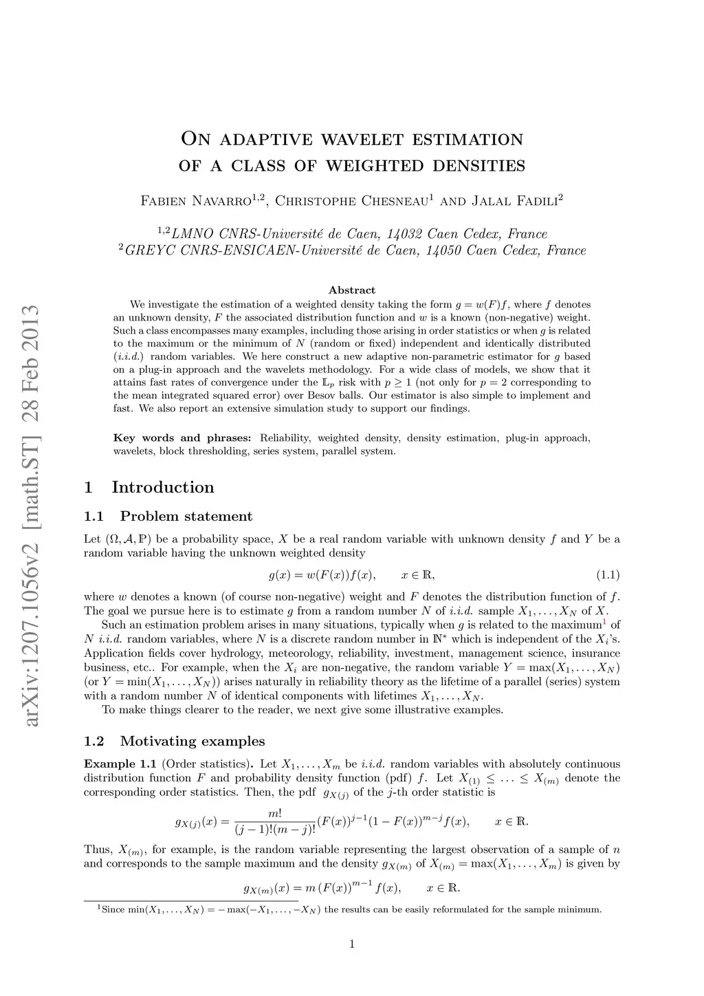 We investigate the estimation of a weighted density taking the form , where denotes an unknown density, the associated distribution function and is a known (non-negative) weight. Such a class encompasses many examples, including those arising in order statistics or when is related to the maximum or the minimum of (random or fixed) independent and identically distributed (\iid) random variables. We here construct a new adaptive non-parametric estimator for based on a plug-in approach and the wavelets methodology. For a wide class of models, we prove that it attains fast rates of convergence under the risk with (not only for corresponding to the mean integrated squared error) over Besov balls. The theoretical findings are illustrated through several simulations.