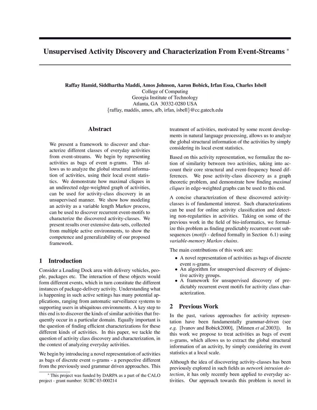 Unsupervised Activity Discovery and Characterization From Event-Streams