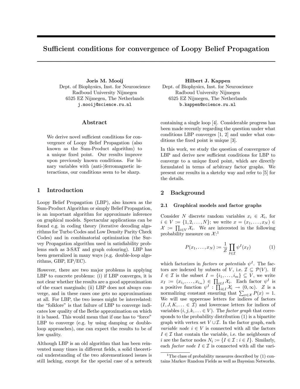 Sufficient conditions for convergence of Loopy Belief Propagation