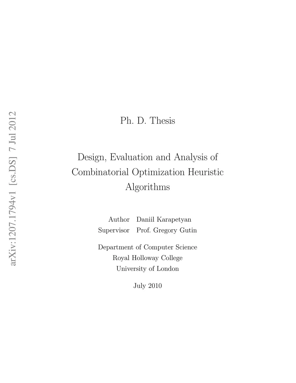 Design, Evaluation and Analysis of Combinatorial Optimization Heuristic