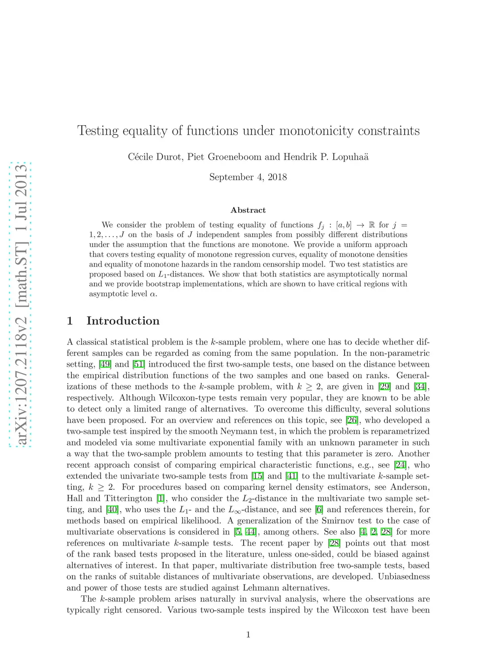 Testing equality of functions under monotonicity constraints