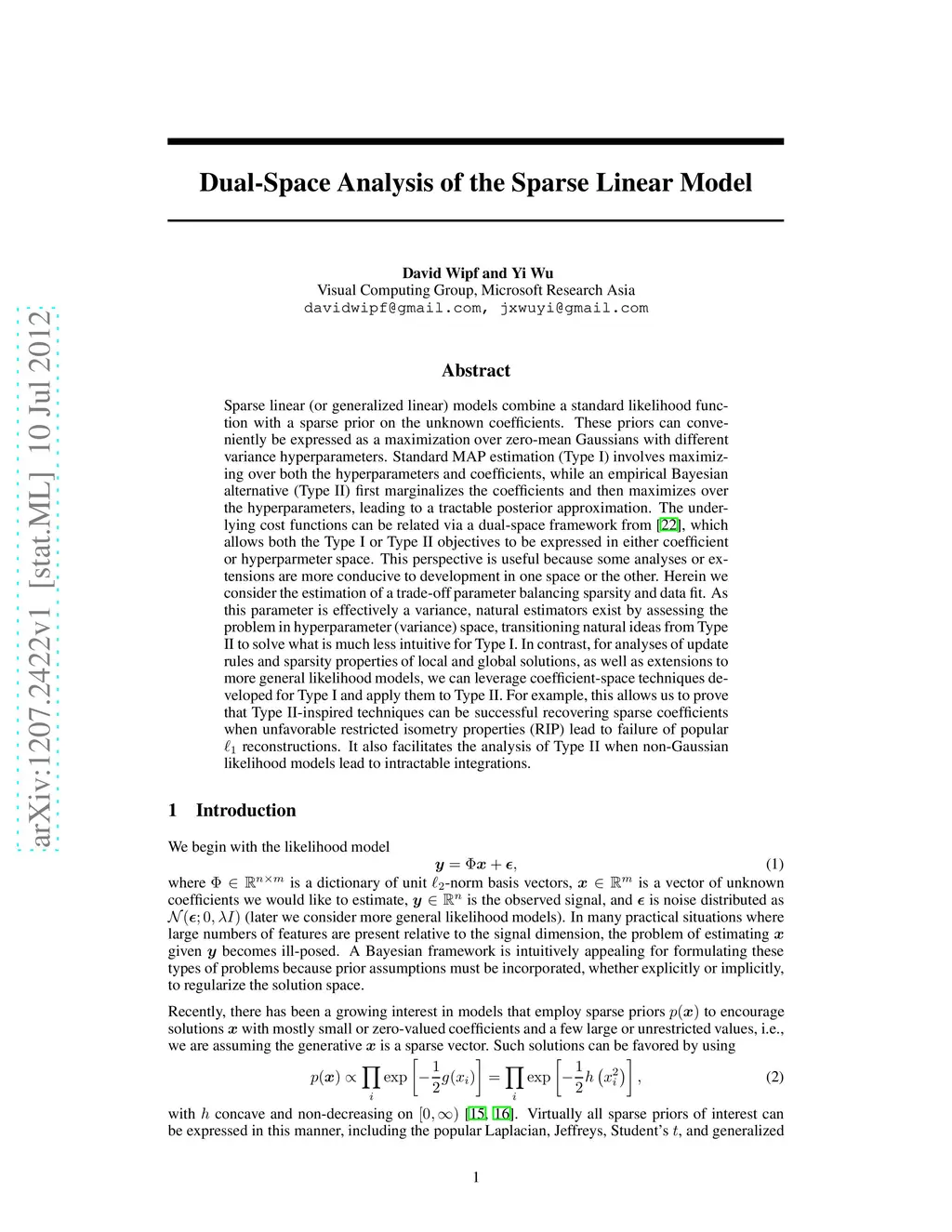 Sparse linear (or generalized linear) models combine a standard likelihood function with a sparse prior on the unknown coefficients. These priors can conveniently be expressed as a maximization over zero-mean Gaussians with different variance hyperparameters. Standard MAP estimation (Type I) involves maximizing over both the hyperparameters and coefficients, while an empirical Bayesian alternative (Type II) first marginalizes the coefficients and then maximizes over the hyperparameters, leading to a tractable posterior approximation. The underlying cost functions can be related via a dual-space framework from Wipf et al. (2011), which allows both the Type I or Type II objectives to be expressed in either coefficient or hyperparmeter space. This perspective is useful because some analyses or extensions are more conducive to development in one space or the other. Herein we consider the estimation of a trade-off parameter balancing sparsity and data fit. As this parameter is effectively a variance, natural estimators exist by assessing the problem in hyperparameter (variance) space, transitioning natural ideas from Type II to solve what is much less intuitive for Type I. In contrast, for analyses of update rules and sparsity properties of local and global solutions, as well as extensions to more general likelihood models, we can leverage coefficient-space techniques developed for Type I and apply them to Type II. For example, this allows us to prove that Type II-inspired techniques can be successful recovering sparse coefficients when unfavorable restricted isometry properties (RIP) lead to failure of popular L1 reconstructions. It also facilitates the analysis of Type II when non-Gaussian likelihood models lead to intractable integrations.