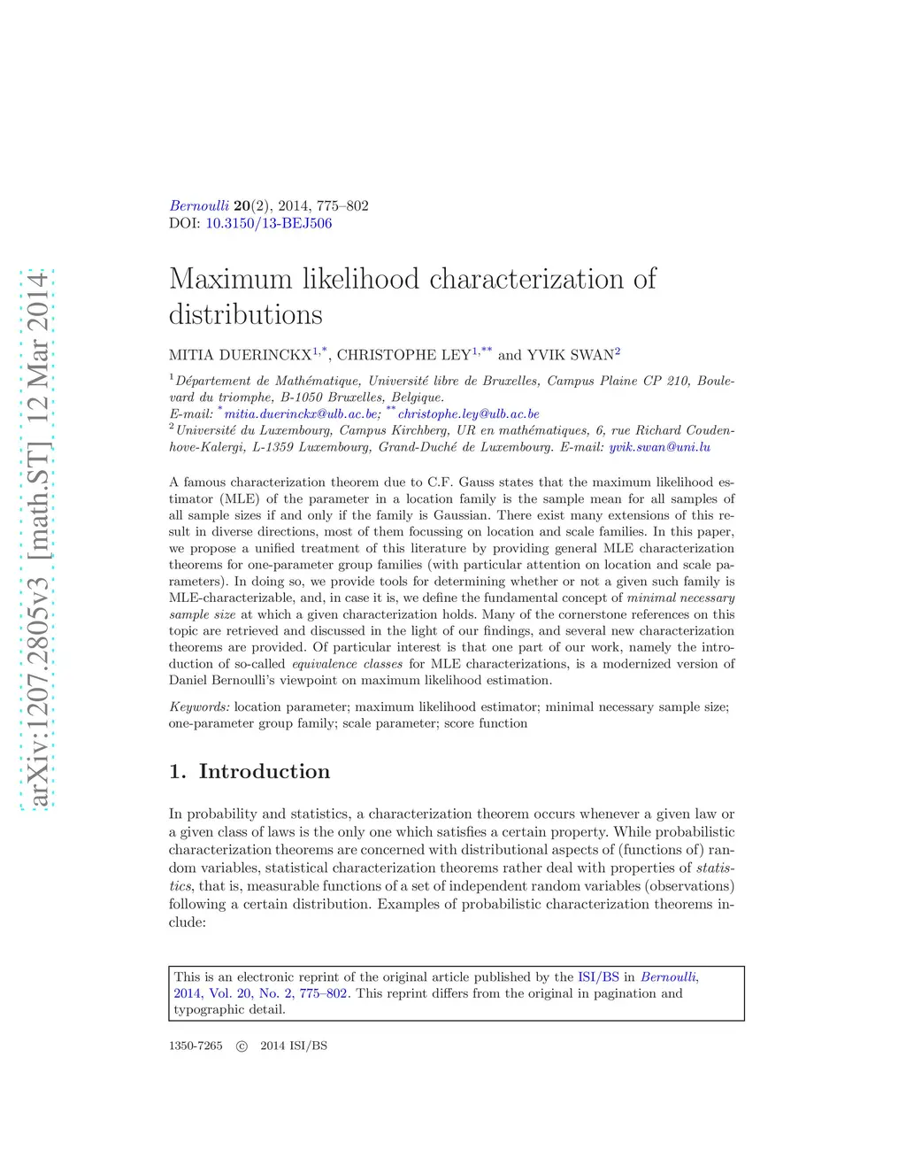 Maximum likelihood characterization of distributions