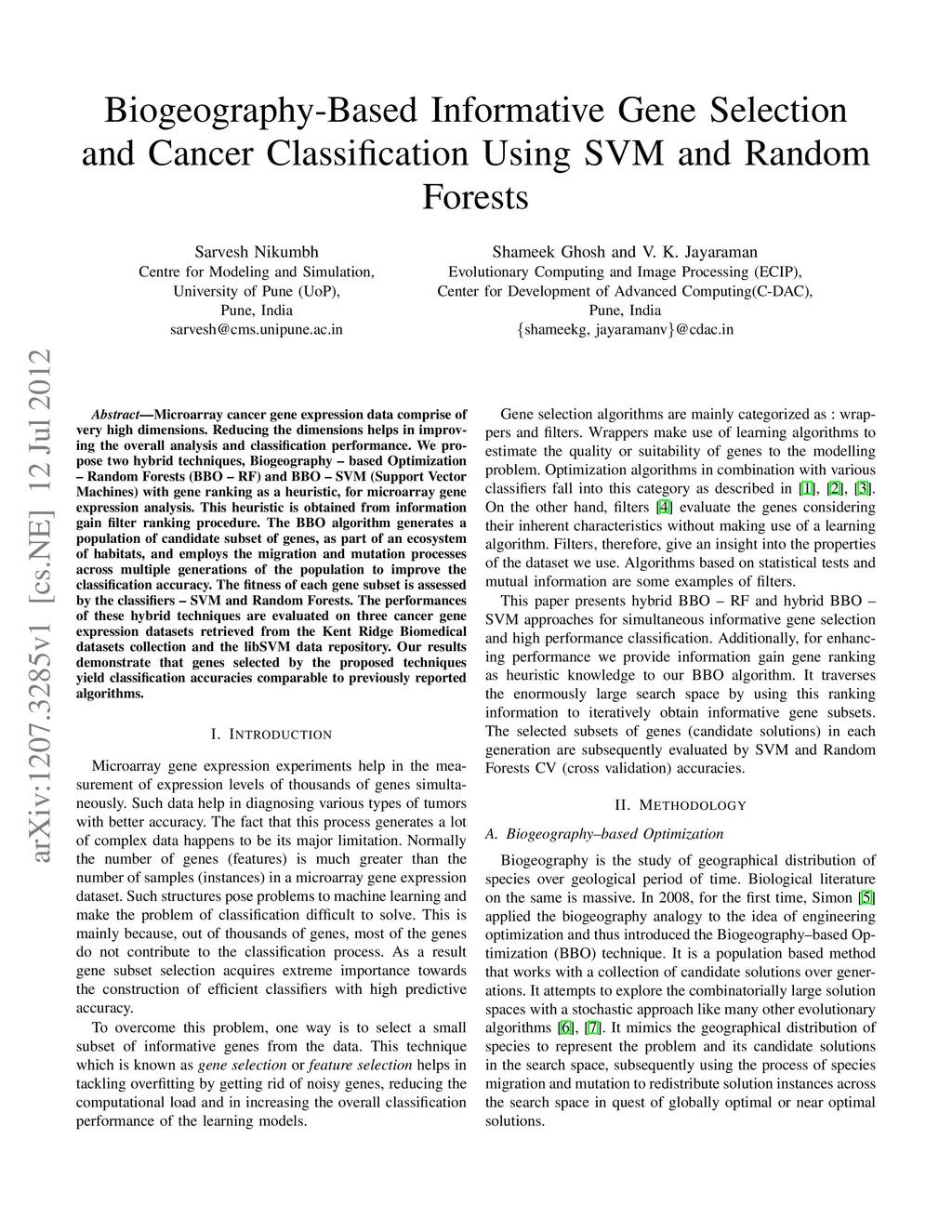 Biogeography-Based Informative Gene Selection and Cancer Classification