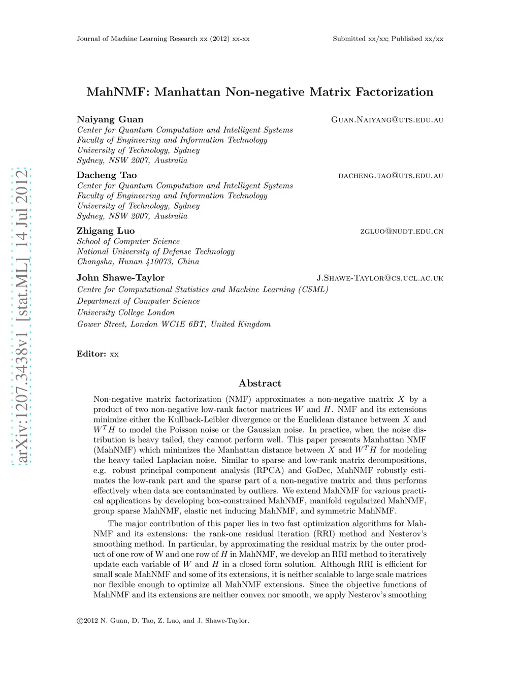 Non-negative matrix factorization (NMF) approximates a non-negative matrix by a product of two non-negative low-rank factor matrices and . NMF and its extensions minimize either the Kullback-Leibler divergence or the Euclidean distance between and to model the Poisson noise or the Gaussian noise. In practice, when the noise distribution is heavy tailed, they cannot perform well. This paper presents Manhattan NMF (MahNMF) which minimizes the Manhattan distance between and for modeling the heavy tailed Laplacian noise. Similar to sparse and low-rank matrix decompositions, MahNMF robustly estimates the low-rank part and the sparse part of a non-negative matrix and thus performs effectively when data are contaminated by outliers. We extend MahNMF for various practical applications by developing box-constrained MahNMF, manifold regularized MahNMF, group sparse MahNMF, elastic net inducing MahNMF, and symmetric MahNMF. The major contribution of this paper lies in two fast optimization algorithms for MahNMF and its extensions: the rank-one residual iteration (RRI) method and Nesterov's smoothing method. In particular, by approximating the residual matrix by the outer product of one row of W and one row of in MahNMF, we develop an RRI method to iteratively update each variable of and in a closed form solution. Although RRI is efficient for small scale MahNMF and some of its extensions, it is neither scalable to large scale matrices nor flexible enough to optimize all MahNMF extensions. Since the objective functions of MahNMF and its extensions are neither convex nor smooth, we apply Nesterov's smoothing method to recursively optimize one factor matrix with another matrix fixed. By setting the smoothing parameter inversely proportional to the iteration number, we improve the approximation accuracy iteratively for both MahNMF and its extensions.