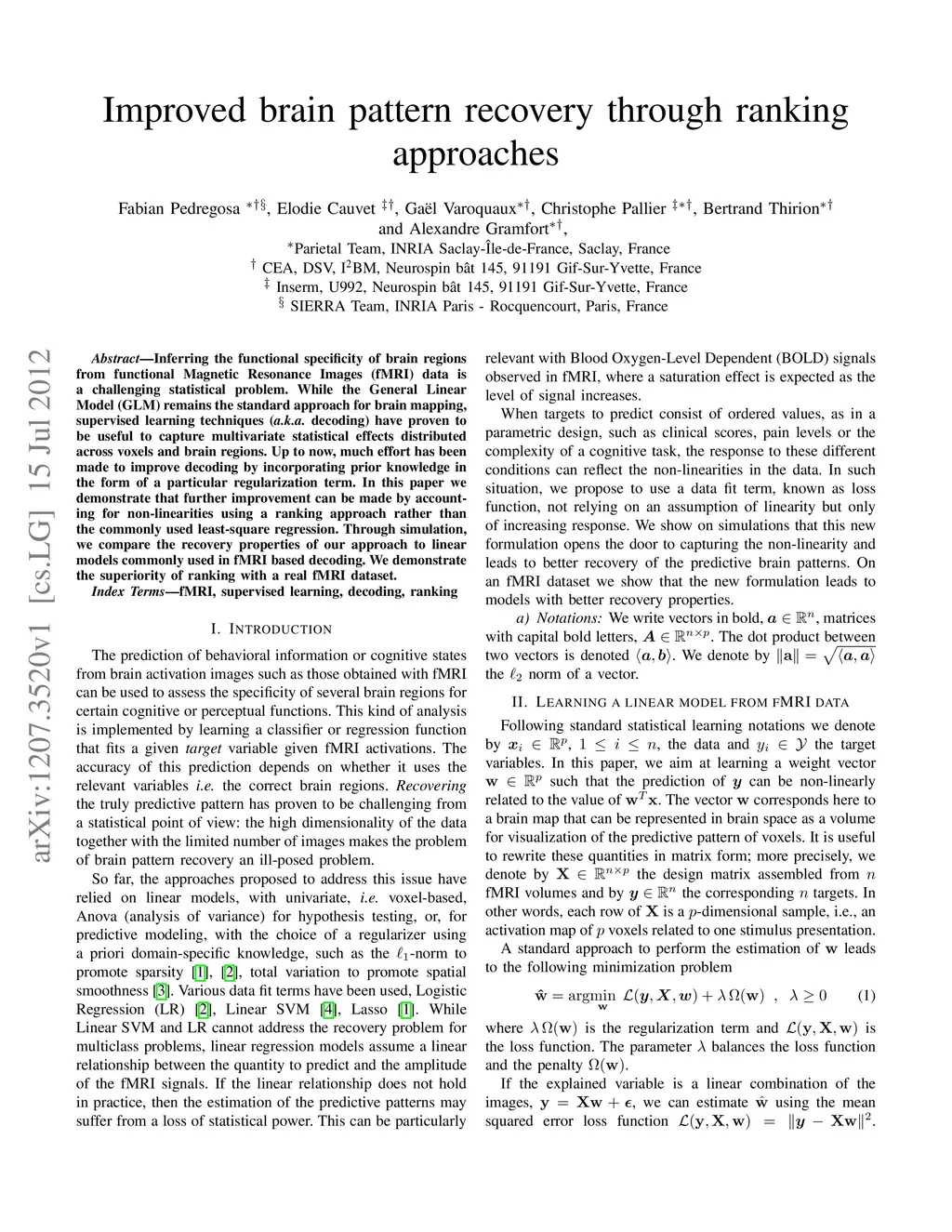 Improved brain pattern recovery through ranking approaches