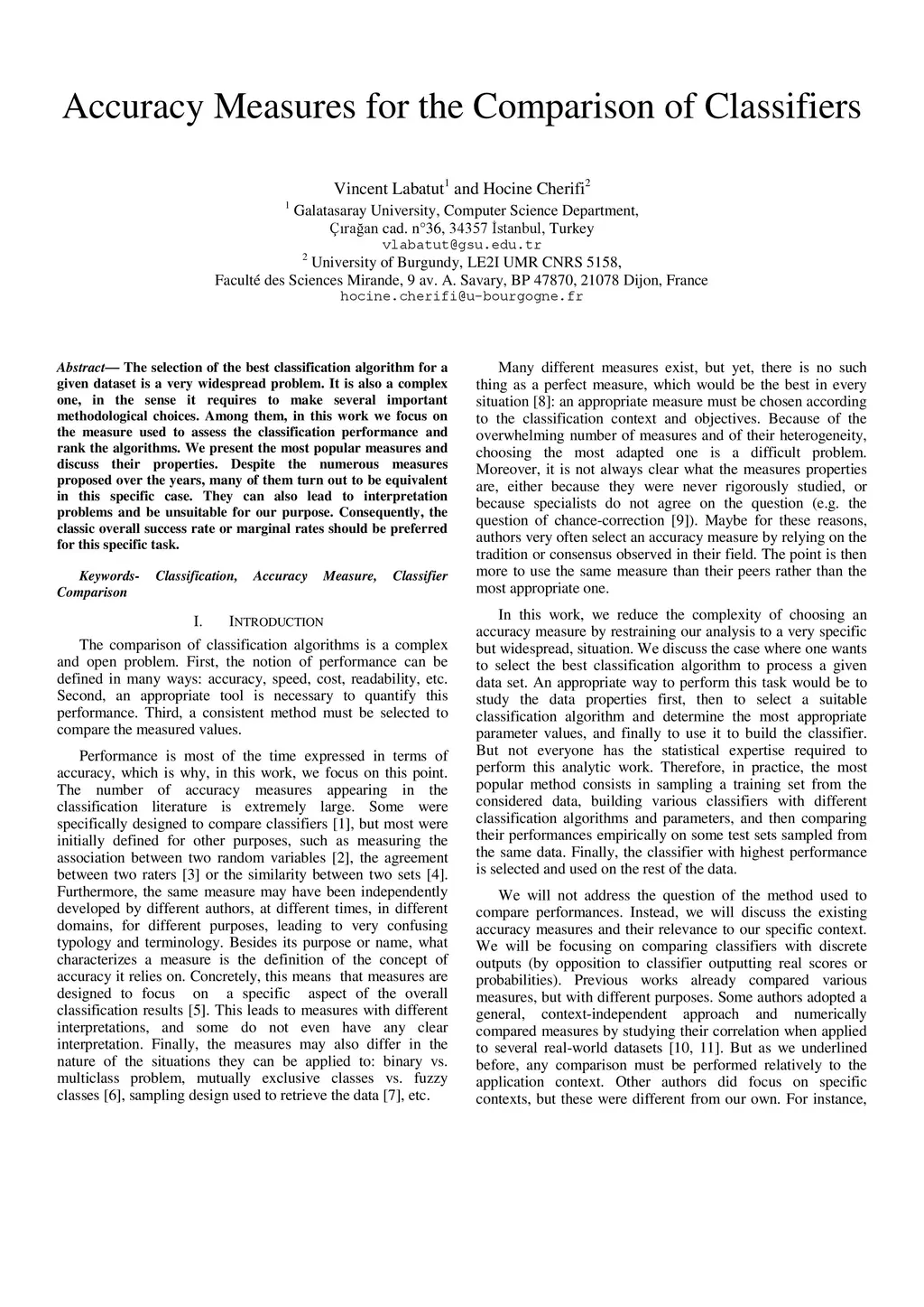 The selection of the best classification algorithm for a given dataset is a very widespread problem. It is also a complex one, in the sense it requires to make several important methodological choices. Among them, in this work we focus on the measure used to assess the classification performance and rank the algorithms. We present the most popular measures and discuss their properties. Despite the numerous measures proposed over the years, many of them turn out to be equivalent in this specific case, to have interpretation problems, or to be unsuitable for our purpose. Consequently, classic overall success rate or marginal rates should be preferred for this specific task.