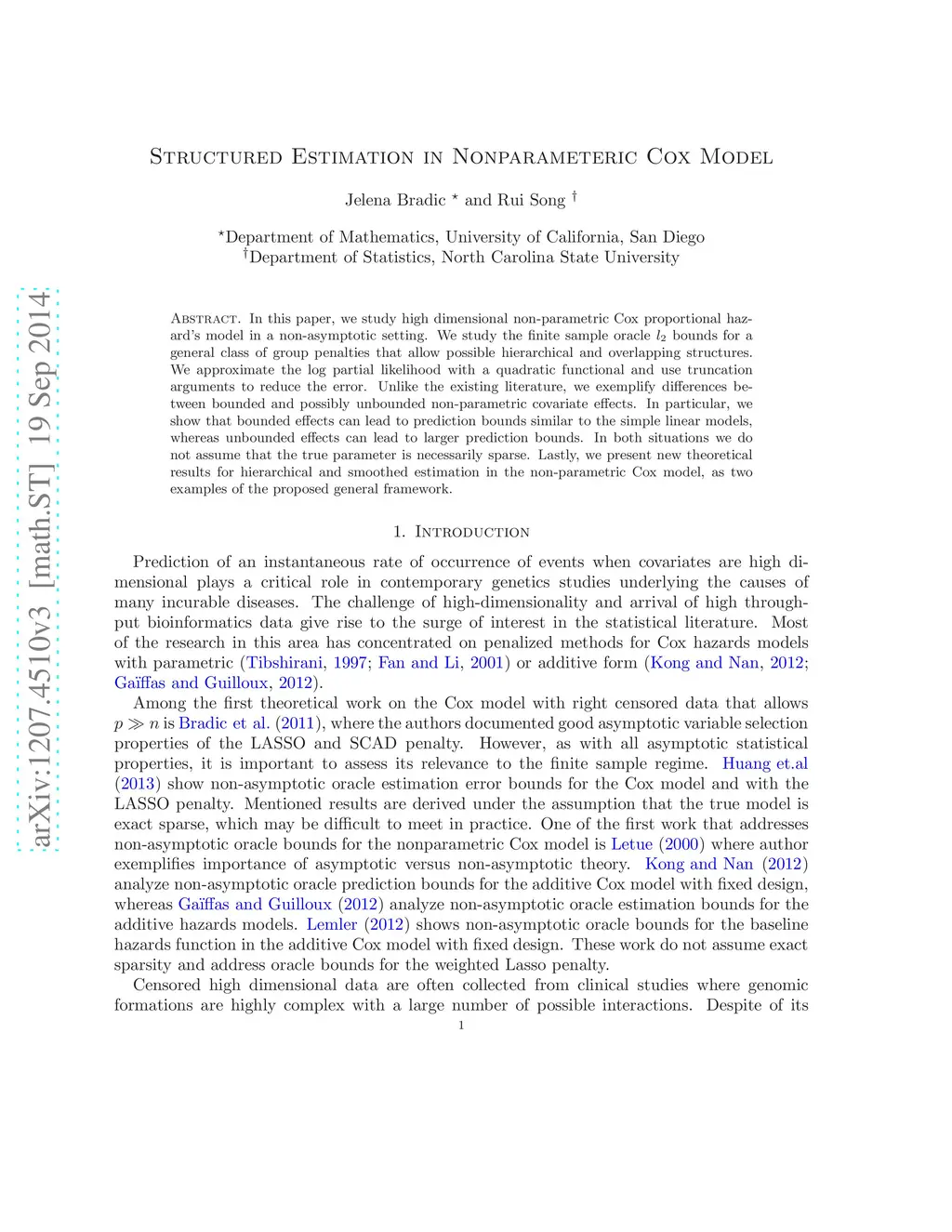 To better understand the interplay of censoring and sparsity we develop finite sample properties of nonparametric Cox proportional hazard's model. Due to high impact of sequencing data, carrying genetic information of each individual, we work with over-parametrized problem and propose general class of group penalties suitable for sparse structured variable selection and estimation. Novel non-asymptotic sandwich bounds for the partial likelihood are developed. We establish how they extend notion of local asymptotic normality (LAN) of Le Cam's. Such non-asymptotic LAN principles are further extended to high dimensional spaces where . Finite sample prediction properties of penalized estimator in non-parametric Cox proportional hazards model, under suitable censoring conditions, agree with those of penalized estimator in linear models.