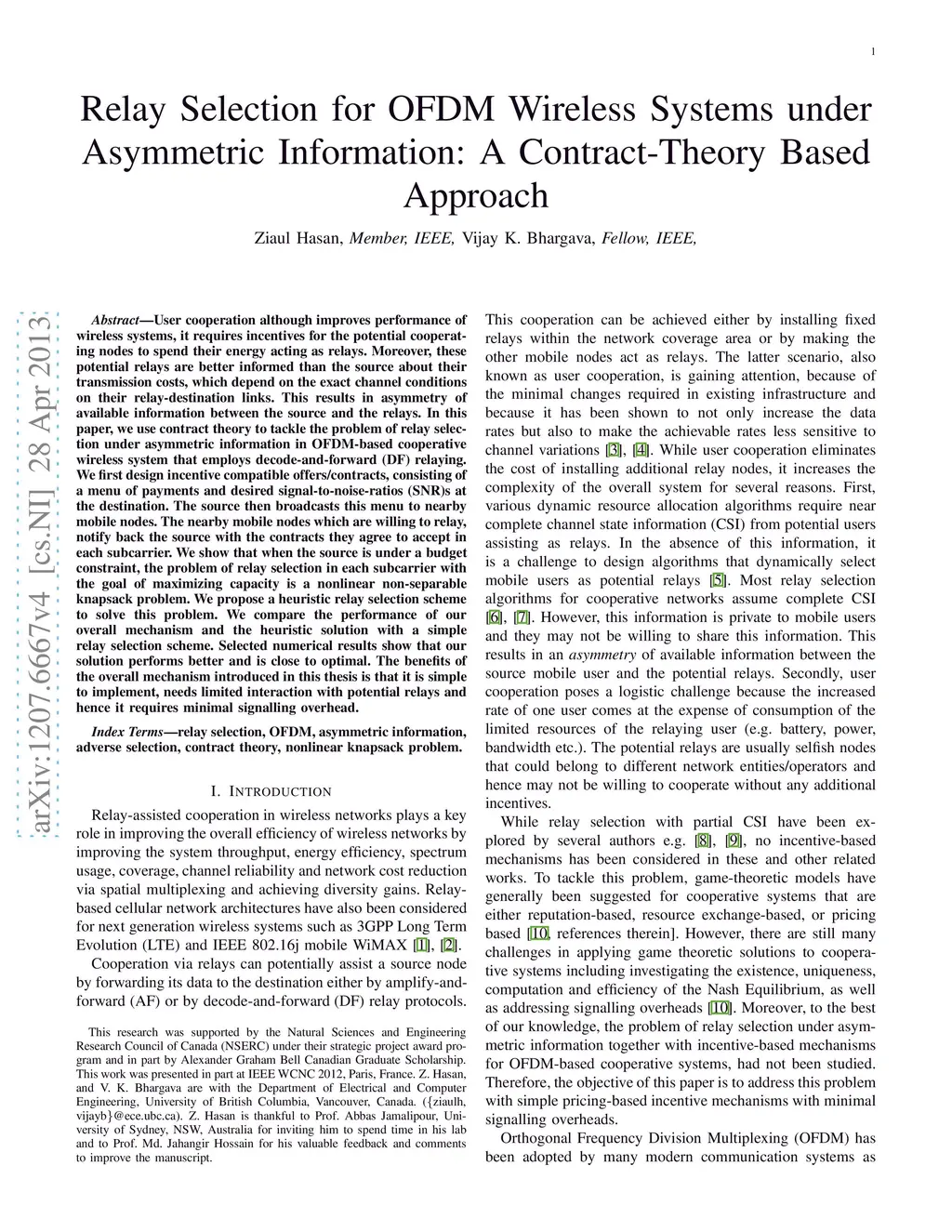 Relay Selection for OFDM Wireless Systems under Asymmetric Information: