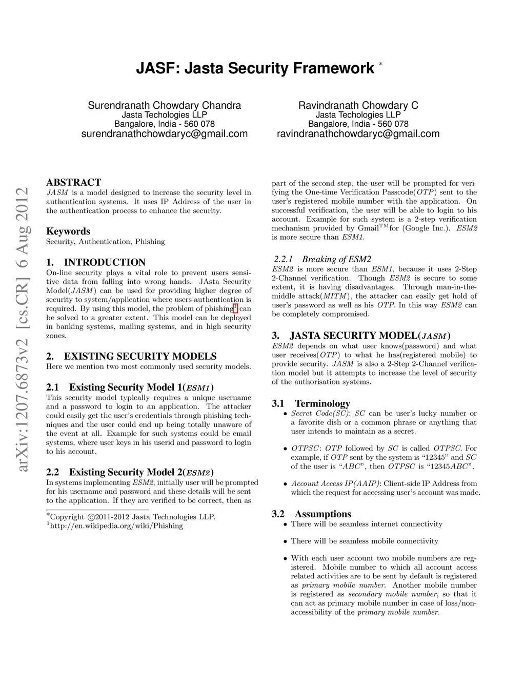 JASM is a model designed to increase the security level in authentication systems. It uses IP Address of the user in the authentication process to enhance the security.
