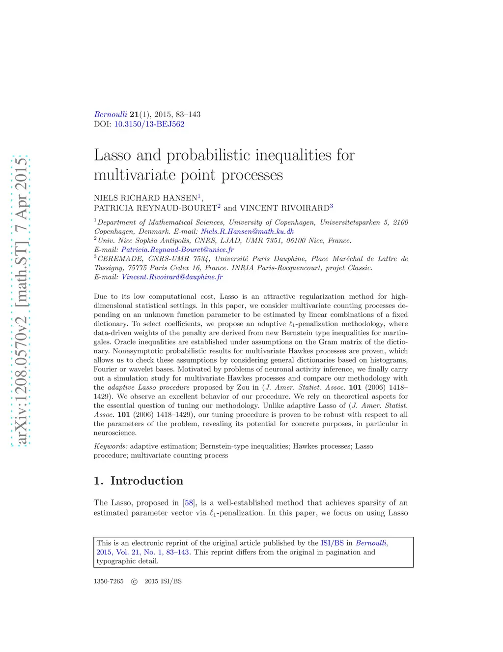 Due to its low computational cost, Lasso is an attractive regularization method for high-dimensional statistical settings. In this paper, we consider multivariate counting processes depending on an unknown function to be estimated by linear combinations of a fixed dictionary. To select coefficients, we propose an adaptive -penalization methodology, where data-driven weights of the penalty are derived from new Bernstein type inequalities for martingales. Oracle inequalities are established under assumptions on the Gram matrix of the dictionary. Non-asymptotic probabilistic results for multivariate Hawkes processes are proven, which allows us to check these assumptions by considering general dictionaries based on histograms, Fourier or wavelet bases. Motivated by problems of neuronal activities inference, we finally lead a simulation study for multivariate Hawkes processes and compare our methodology with the adaptive Lasso procedure proposed by Zou (2006). We observe an excellent behavior of our procedure with respect to the problem of supports recovery. We rely on theoretical aspects for the essential question of tuning our methodology. Unlike adaptive Lasso of Zou (2006), our tuning procedure is proven to be robust with respect to all the parameters of the problem, revealing its potential for concrete purposes, in particular in neuroscience.