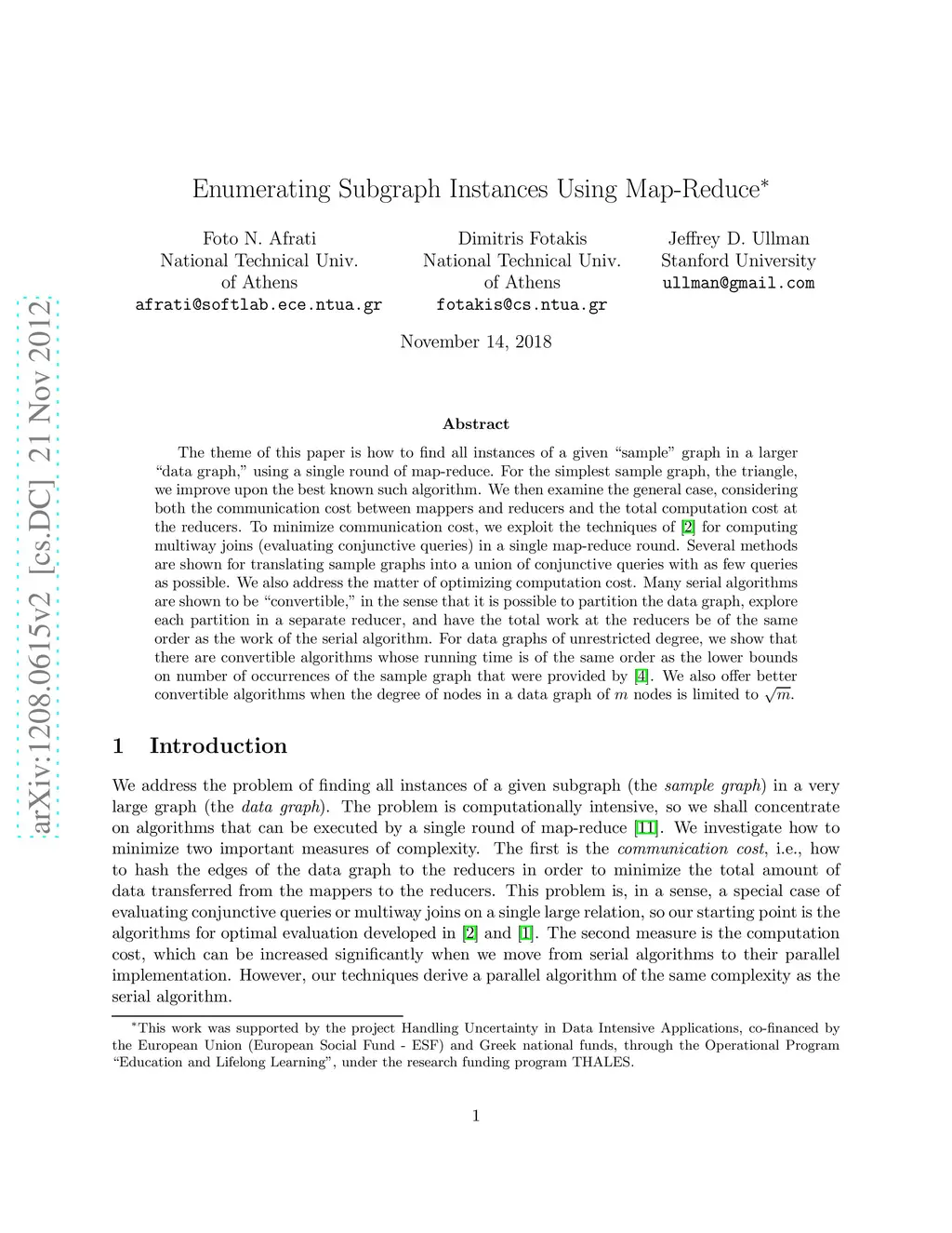 The theme of this paper is how to find all instances of a given "sample" graph in a larger "data graph," using a single round of map-reduce. For the simplest sample graph, the triangle, we improve upon the best known such algorithm. We then examine the general case, considering both the communication cost between mappers and reducers and the total computation cost at the reducers. To minimize communication cost, we exploit the techniques of (Afrati and Ullman, TKDE 2011)for computing multiway joins (evaluating conjunctive queries) in a single map-reduce round. Several methods are shown for translating sample graphs into a union of conjunctive queries with as few queries as possible. We also address the matter of optimizing computation cost. Many serial algorithms are shown to be "convertible," in the sense that it is possible to partition the data graph, explore each partition in a separate reducer, and have the total computation cost at the reducers be of the same order as the computation cost of the serial algorithm.