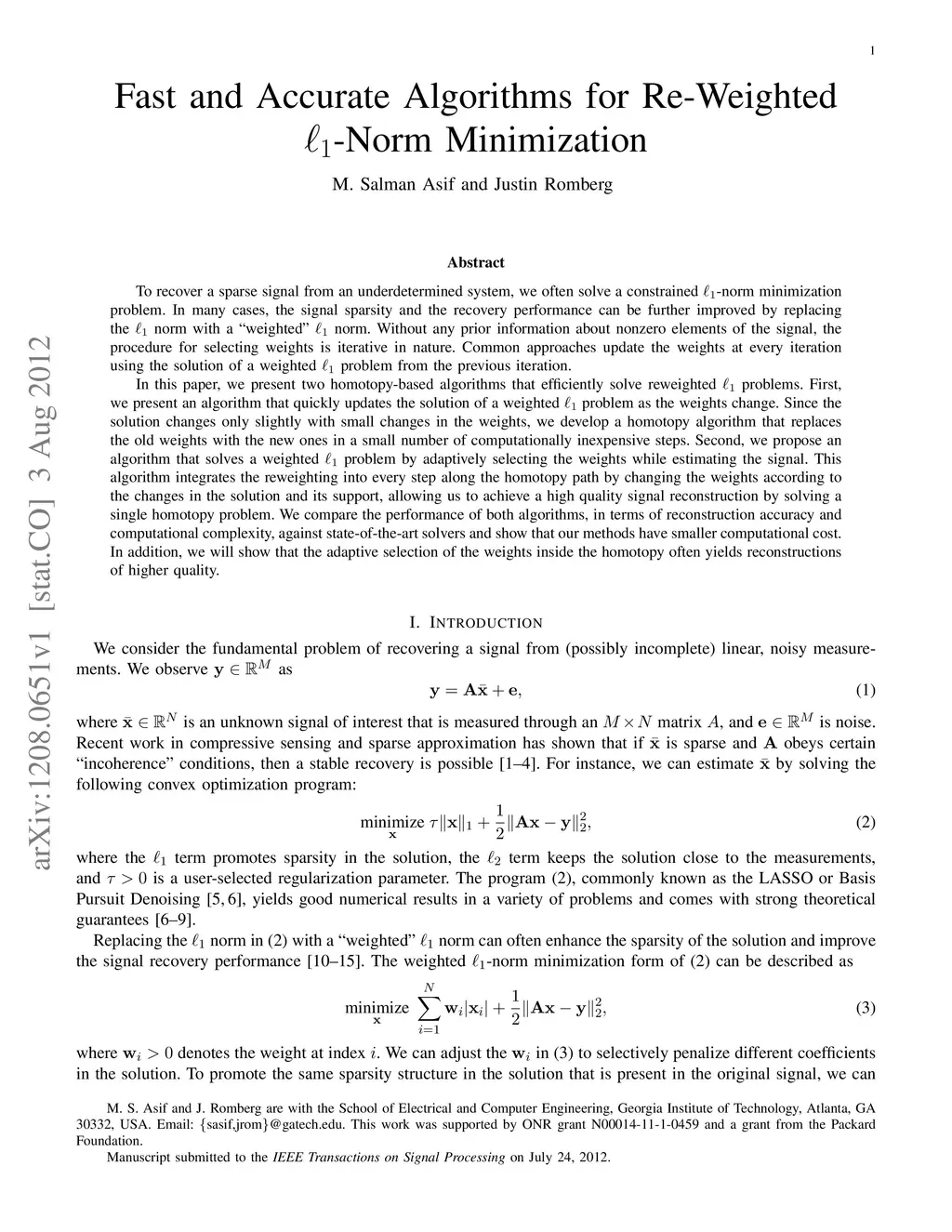 Fast and Accurate Algorithms for Re-Weighted L1-Norm Minimization