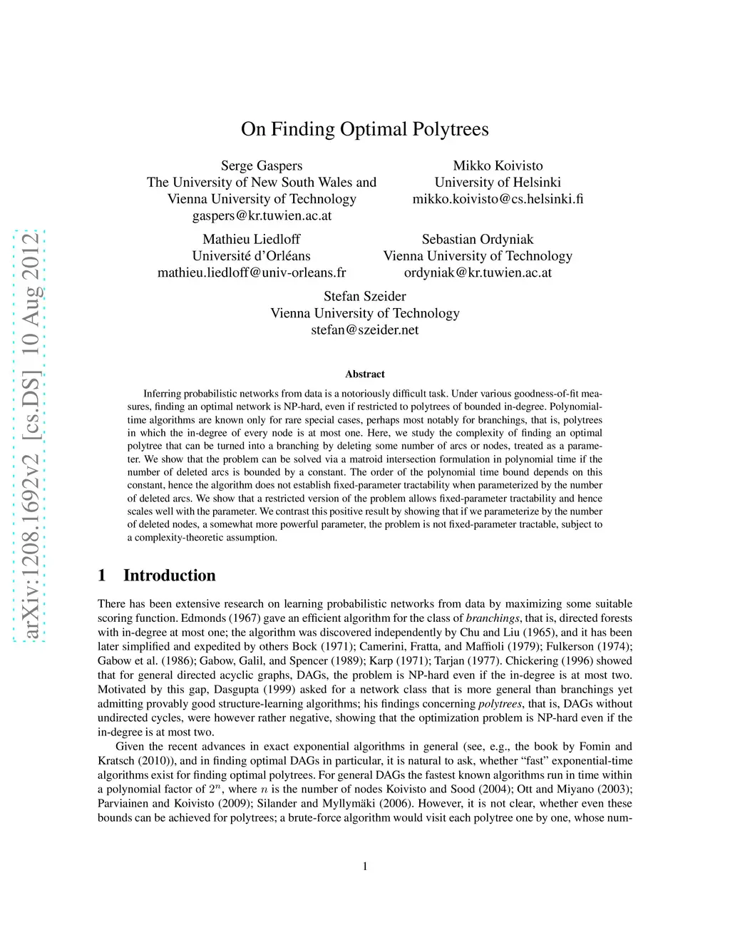 On Finding Optimal Polytrees
