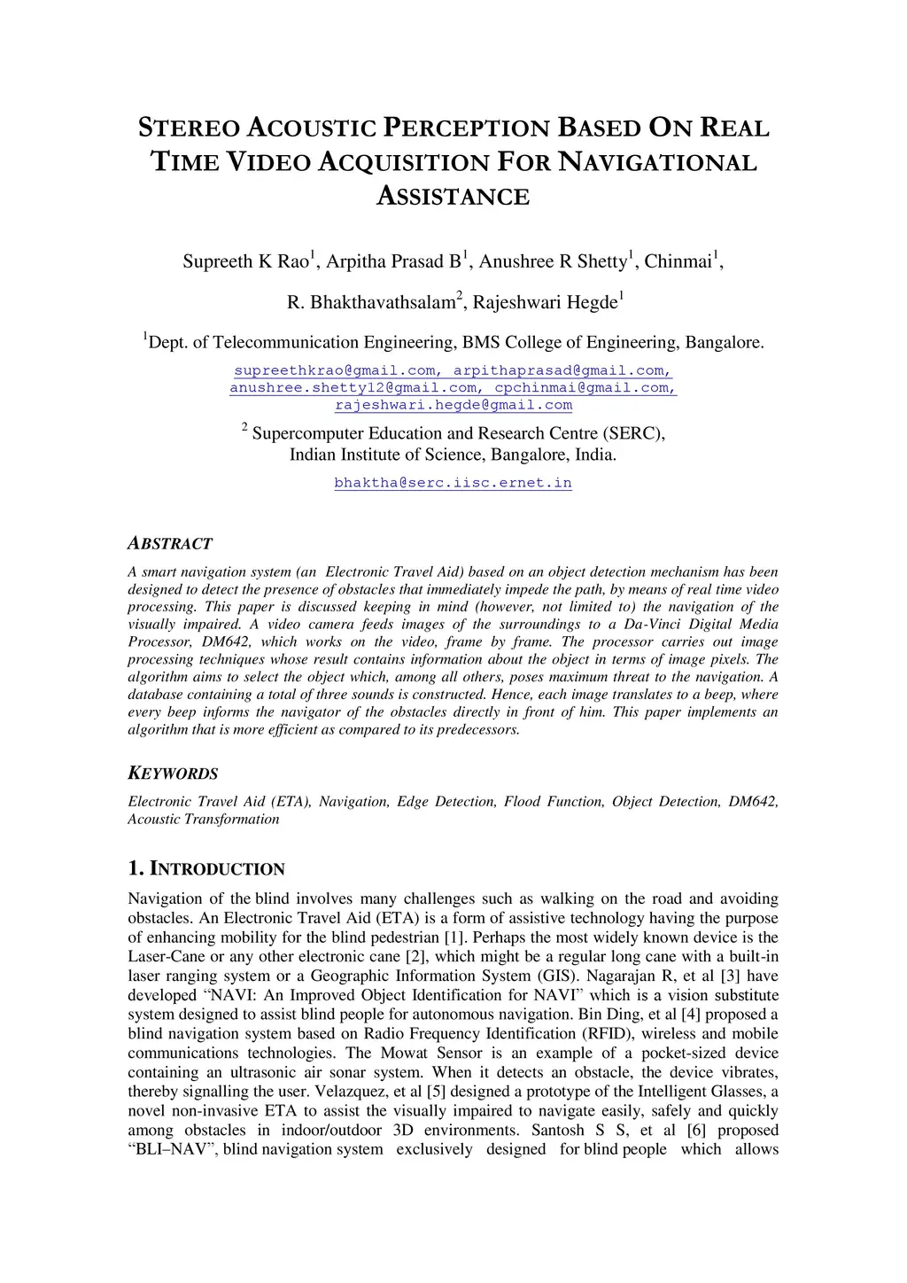 A smart navigation system (an Electronic Travel Aid) based on an object detection mechanism has been designed to detect the presence of obstacles that immediately impede the path, by means of real time video processing. The algorithm can be used for any general purpose navigational aid. This paper is discussed, keeping in mind the navigation of the visually impaired, and is not limited to the same. A video camera feeds images of the surroundings to a Da- Vinci Digital Media Processor, DM642, which works on the video, frame by frame. The processor carries out image processing techniques whose result contains information about the object in terms of image pixels. The algorithm aims to select the object which, among all others, poses maximum threat to the navigation. A database containing a total of three sounds is constructed. Hence, each image translates to a beep, where every beep informs the navigator of the obstacles directly in front of him. This paper implements an algorithm that is more efficient as compared to its predecessors.