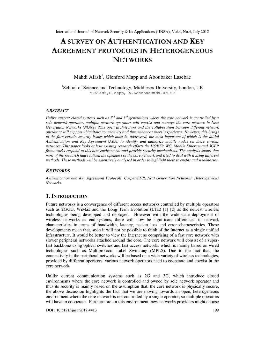A Survey on Authentication and Key Agreement Protocols in Heterogeneous