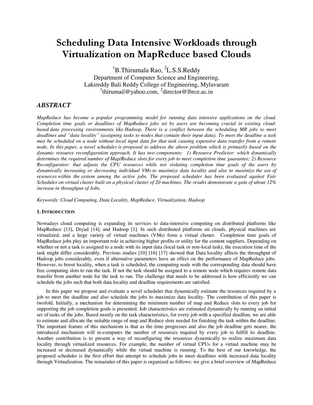Scheduling Data Intensive Workloads through Virtualization on MapReduce