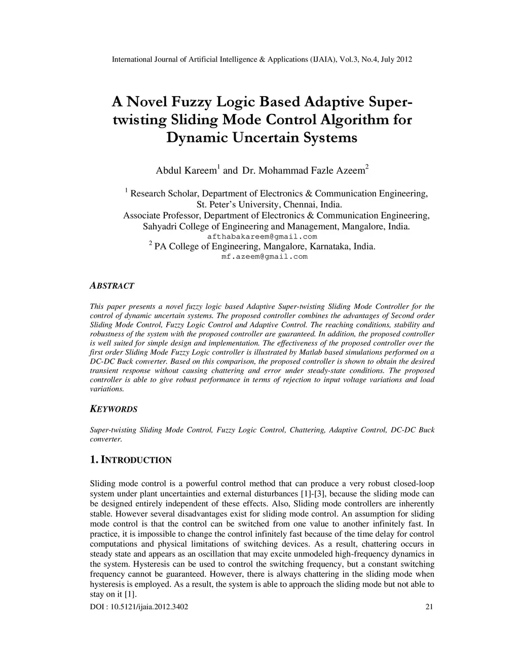 A Novel Fuzzy Logic Based Adaptive Supertwisting Sliding Mode Control