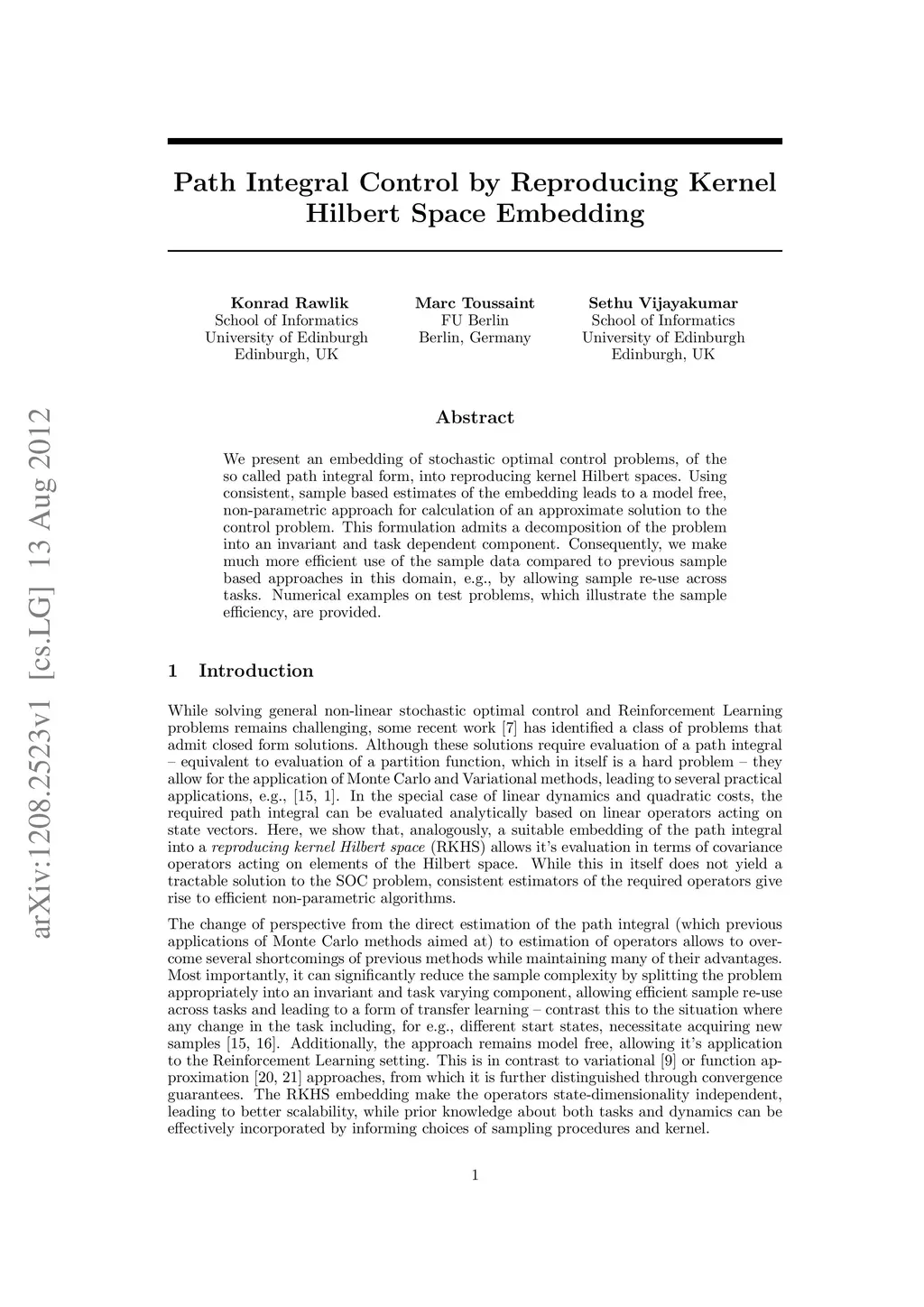 Path Integral Control by Reproducing Kernel Hilbert Space Embedding