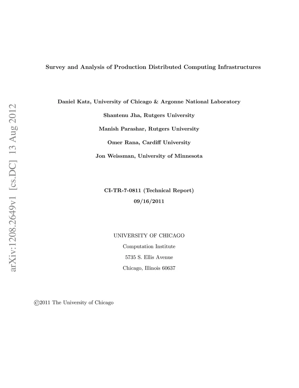 Survey and Analysis of Production Distributed Computing Infrastructures