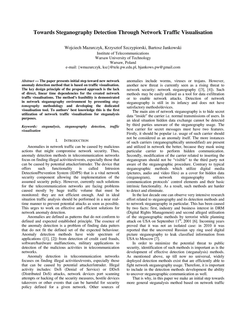 The paper presents initial step toward new network anomaly detection method that is based on traffic visualisation. The key design principle of the proposed approach is the lack of direct, linear time dependencies for the created network traffic visualisations. The method's feasibility is demonstrated in network steganography environment by presenting steg-tomography methodology and developing the dedicated visualisation tool. To authors' best knowledge this is the first utilization of network traffic visualisations for steganalysis purposes.