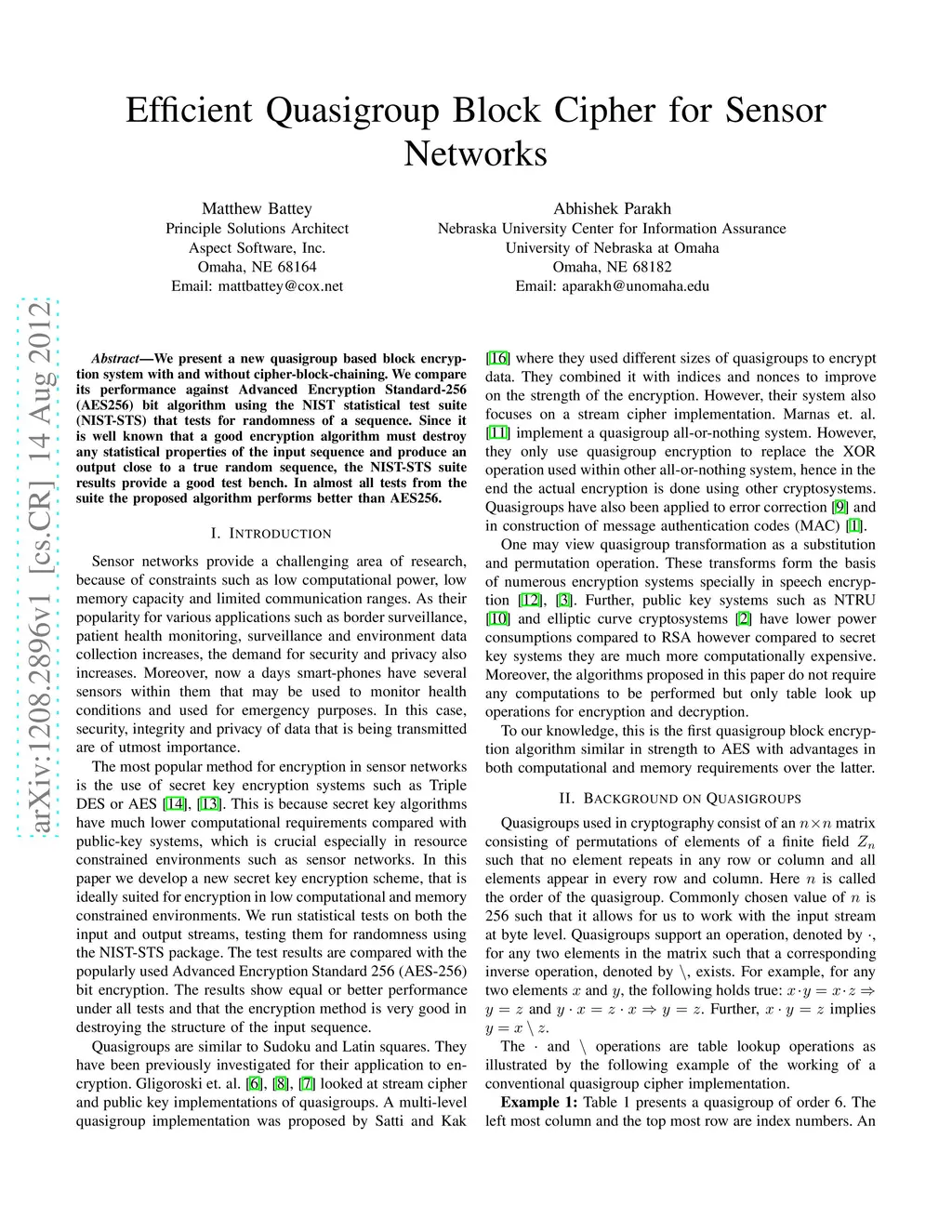 Efficient Quasigroup Block Cipher for Sensor Networks