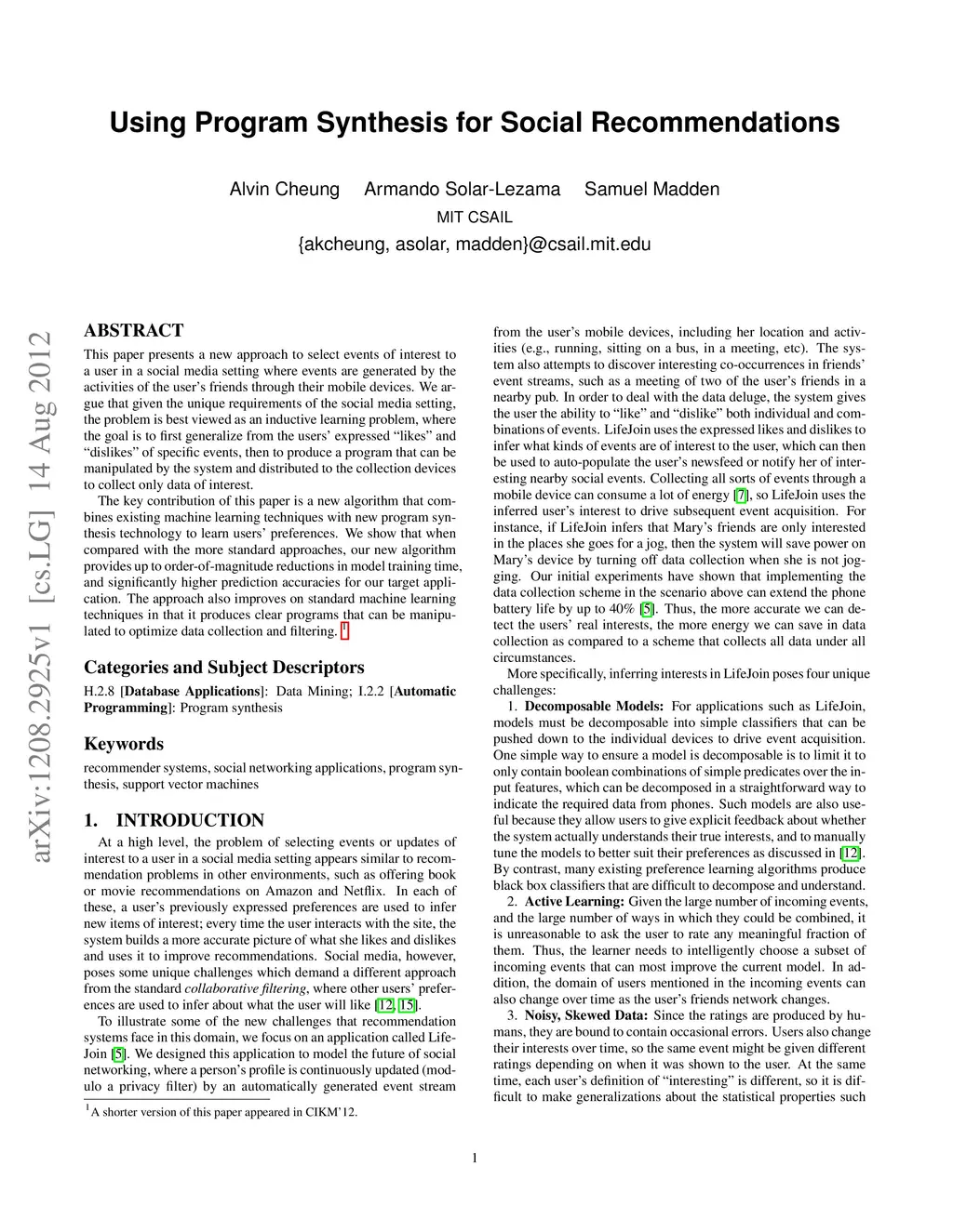 Using Program Synthesis for Social Recommendations