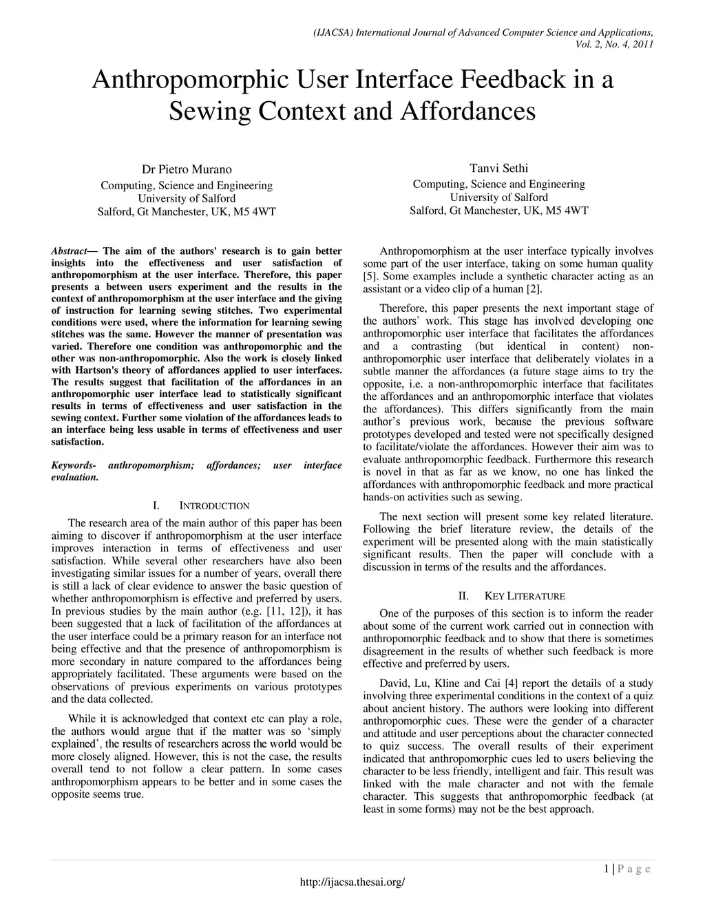 Anthropomorphic User Interface Feedback in a Sewing Context and