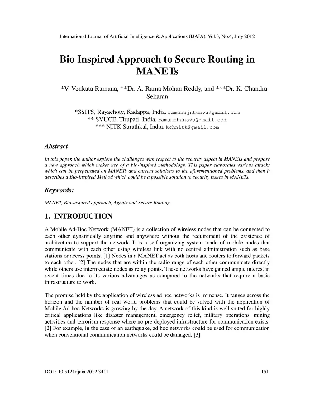 In this paper, the author explore the challenges with respect to the security aspect in MANETs and propose a new approach which makes use of a bio-inspired methodology. This paper elaborates various attacks which can be perpetrated on MANETs and current solutions to the aforementioned problems, and then it describes a Bio-Inspired Method which could be a possible solution to security issues in MANETs.