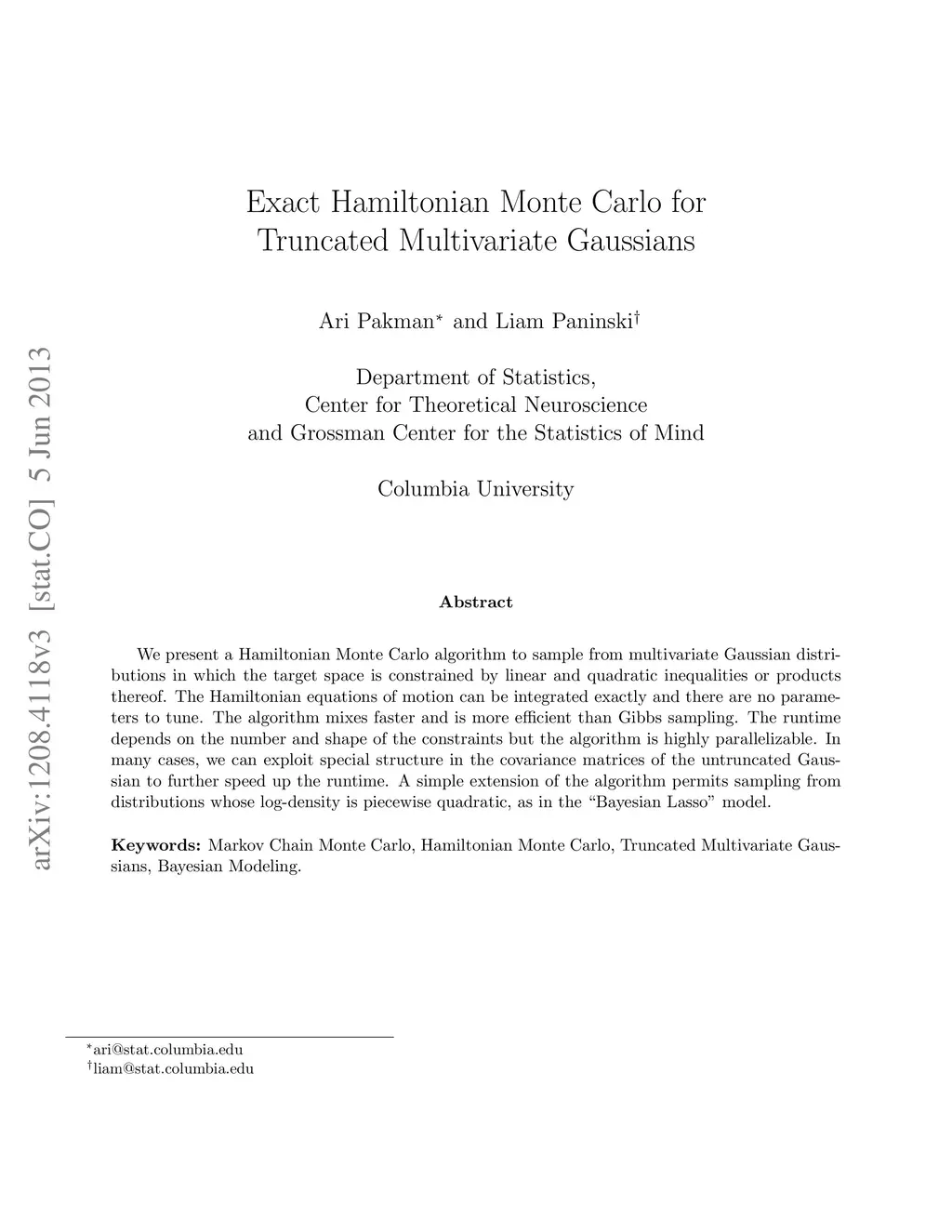 Exact Hamiltonian Monte Carlo for Truncated Multivariate Gaussians