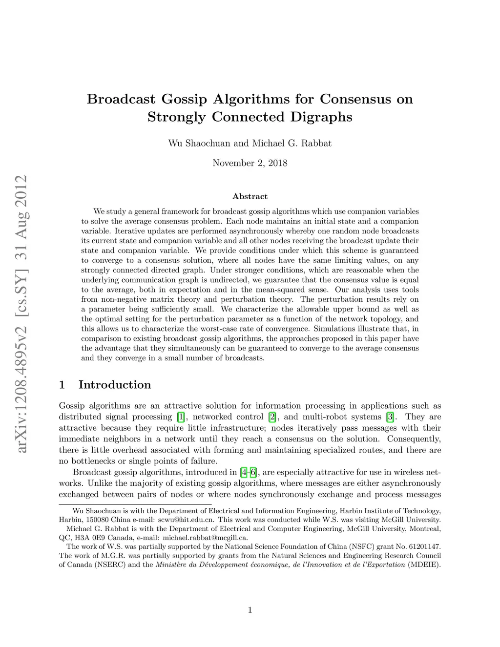 Broadcast Gossip Algorithms for Consensus on Strongly Connected Digraphs