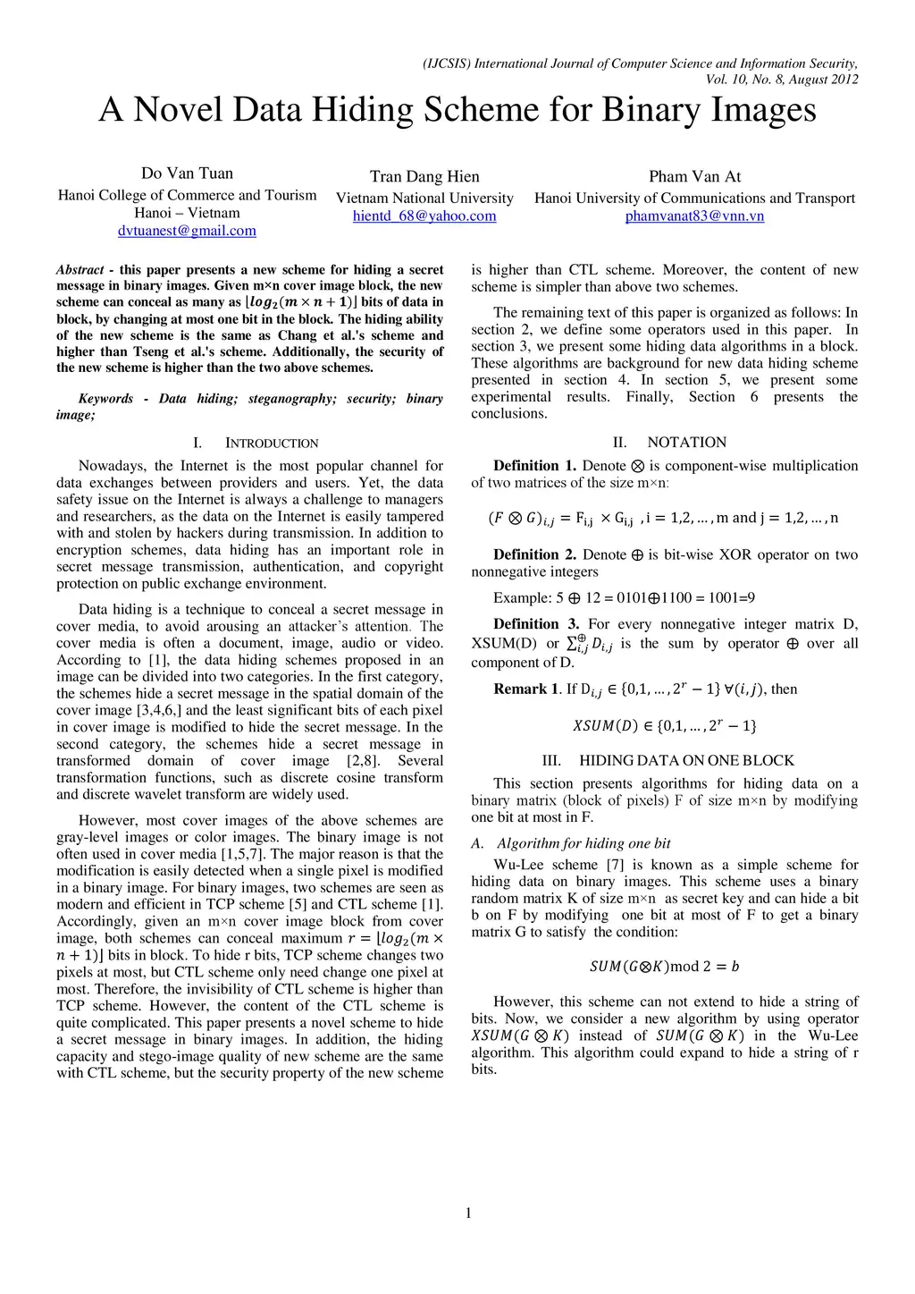 A Novel Data Hiding Scheme for Binary Images