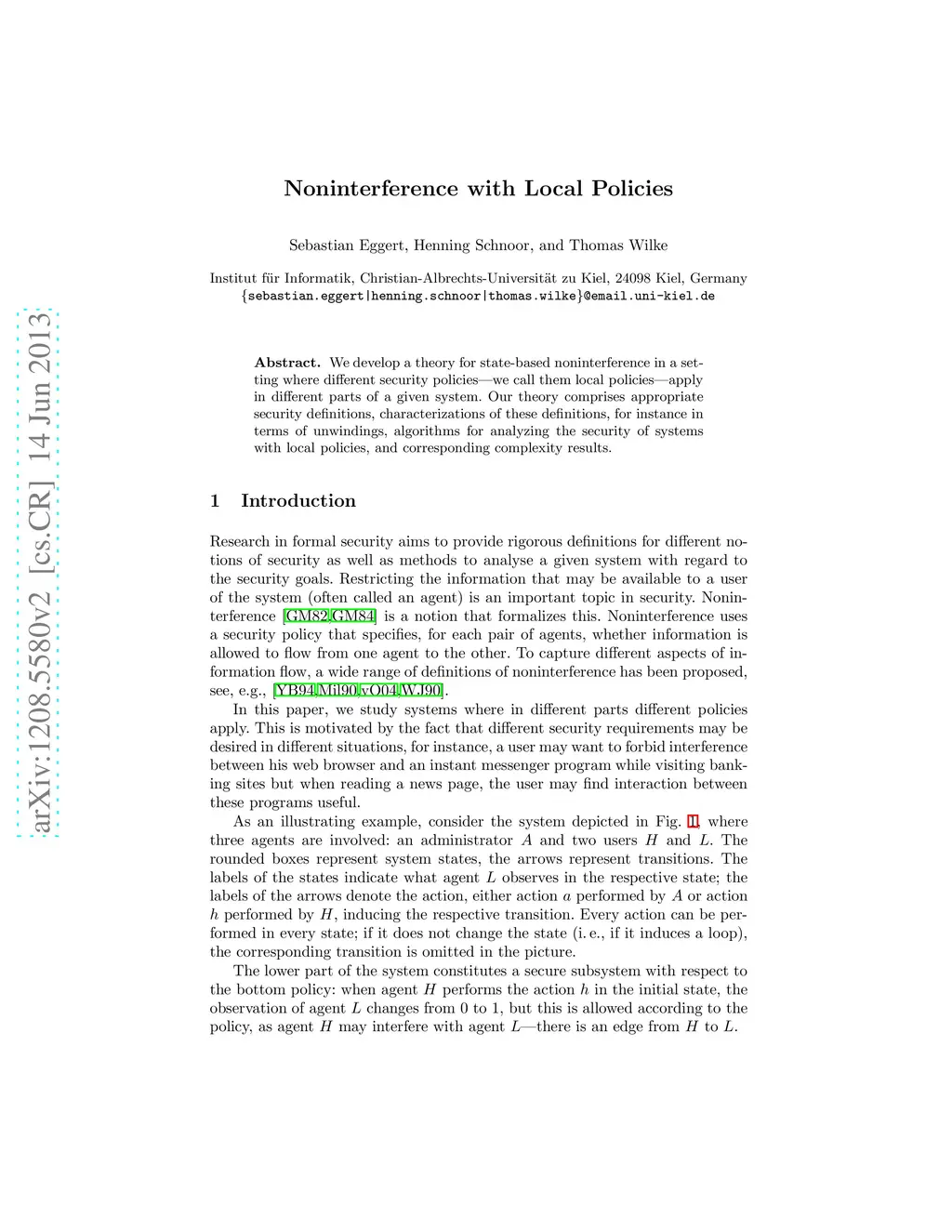 We develop a theory for state-based noninterference in a setting where different security policies---we call them local policies---apply in different parts of a given system. Our theory comprises appropriate security definitions, characterizations of these definitions, for instance in terms of unwindings, algorithms for analyzing the security of systems with local policies, and corresponding complexity results.
