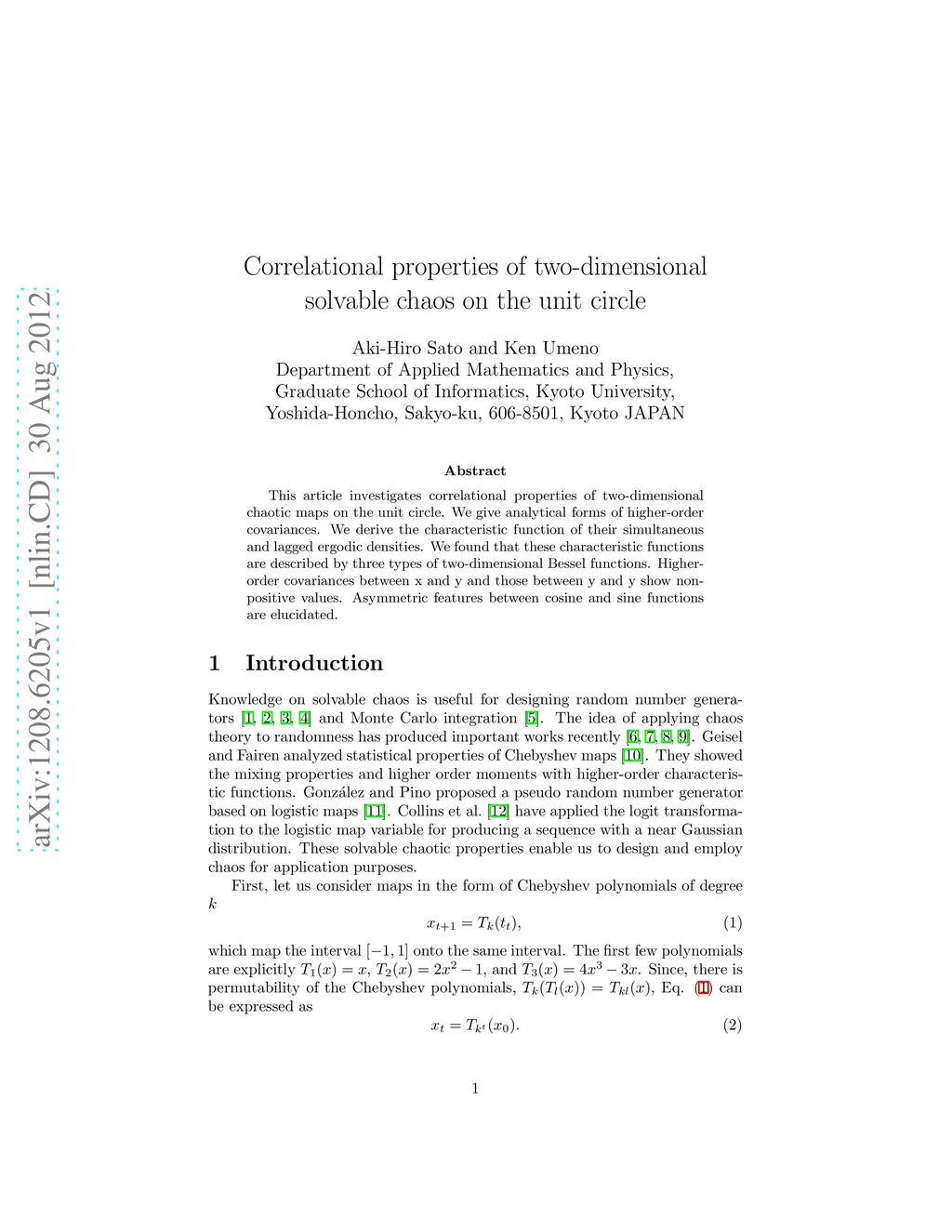 This article investigates correlational properties of two-dimensional chaotic maps on the unit circle. We give analytical forms of higher-order covariances. We derive the characteristic function of their simultaneous and lagged ergodic densities. We found that these characteristic functions are described by three types of two-dimensional Bessel functions. Higher-order covariances between x and y and those between y and y show non-positive values. Asymmetric features between cosine and sine functions are elucidated.