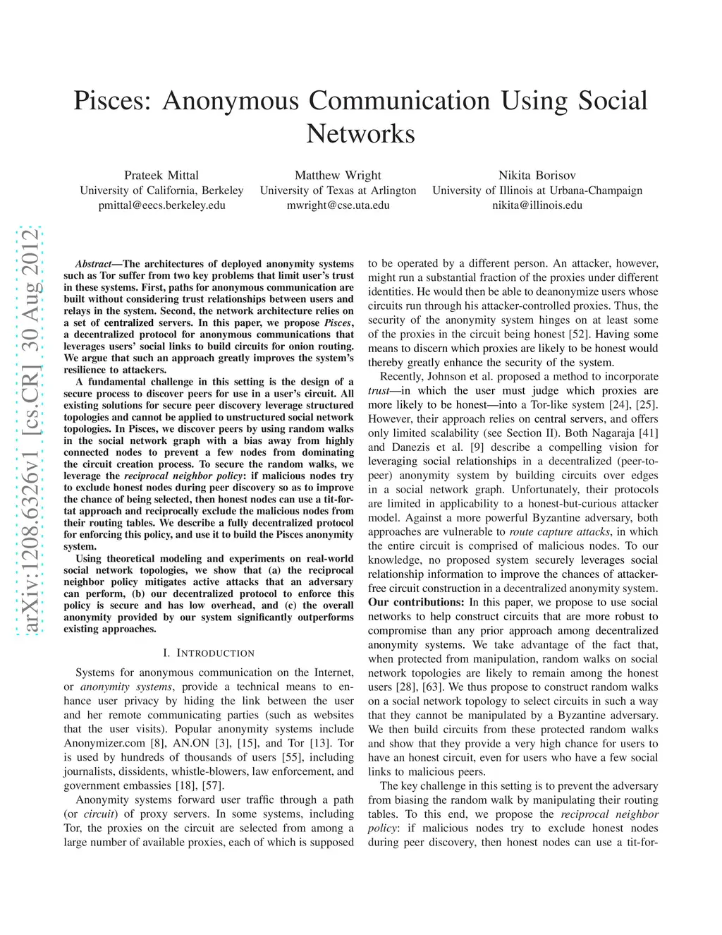 Pisces: Anonymous Communication Using Social Networks