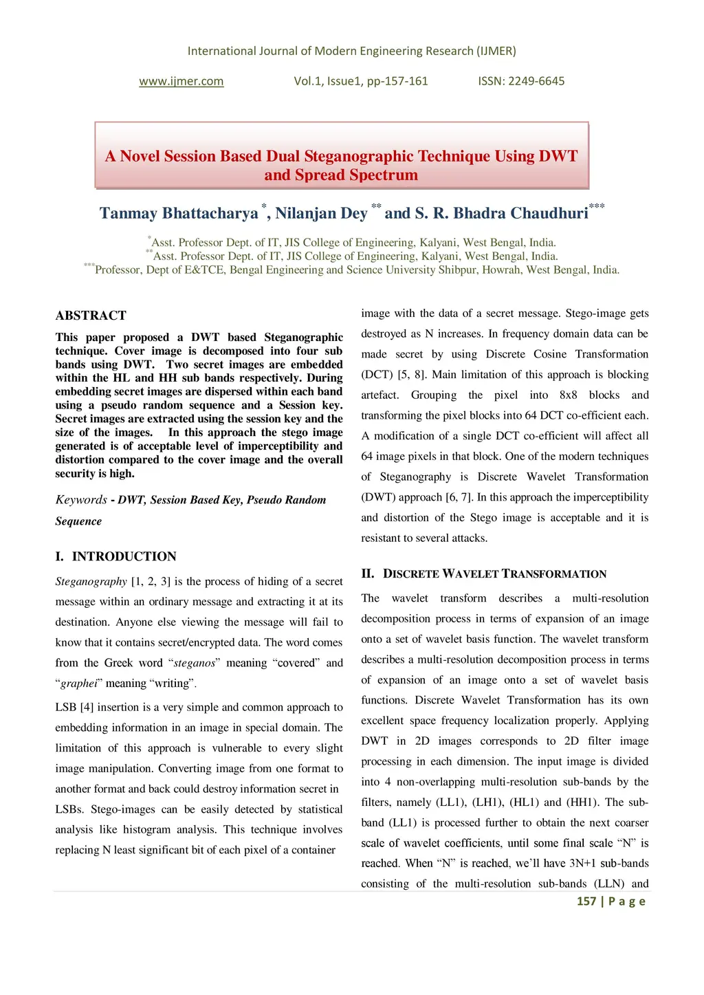 A Novel Session Based Dual Steganographic Technique Using DWT and Spread