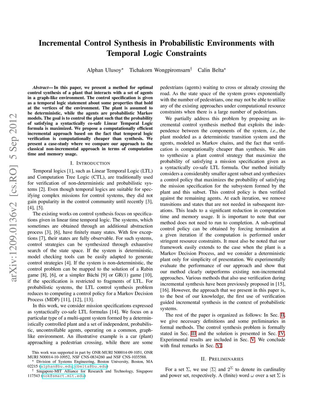 Incremental Control Synthesis in Probabilistic Environments with