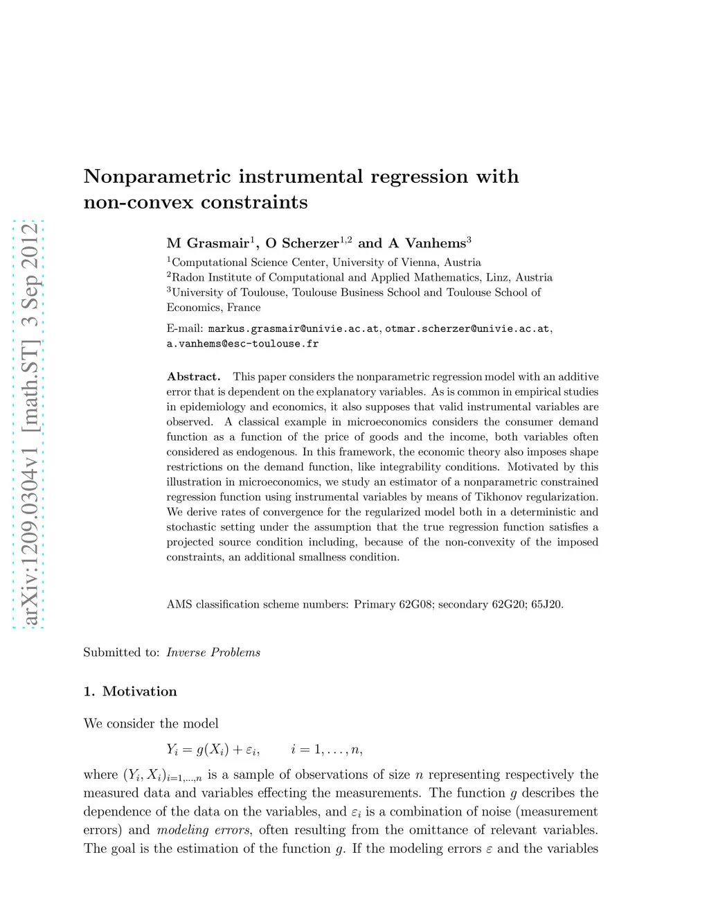 Nonparametric instrumental regression with non-convex constraints
