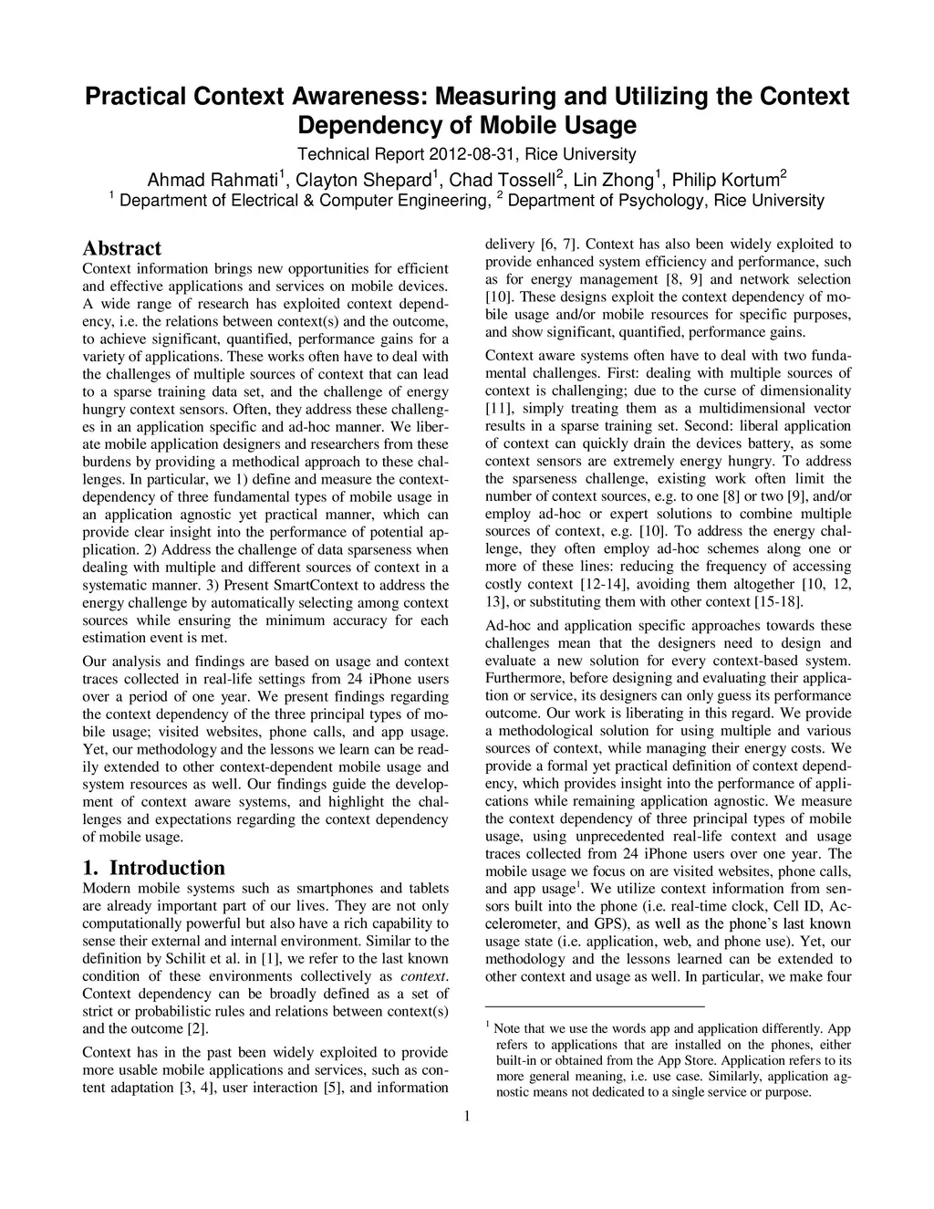 Context information brings new opportunities for efficient and effective applications and services on mobile devices. A wide range of research has exploited context dependency, i.e., the relations between context(s) and the outcome, to achieve significant, quantified, performance gains for a variety of applications. These works often have to deal with the challenges of multiple sources of context that can lead to a sparse training data set, and the challenge of energy hungry context sensors. Often, they address these challenges in an application specific and ad-hoc manner. We liberate mobile application designers and researchers from these burdens by providing a methodical approach to these challenges. In particular, we 1) define and measure the context-dependency of three fundamental types of mobile usage in an application agnostic yet practical manner, which can provide clear insight into the performance of potential ap-plication. 2) Address the challenge of data sparseness when dealing with multiple and different sources of context in a systematic manner. 3) Present SmartContext to address the energy challenge by automatically selecting among context sources while ensuring the minimum accuracy for each estimation event is met. Our analysis and findings are based on usage and context traces collected in real-life settings from 24 iPhone users over a period of one year. We present findings regarding the context dependency of the three principal types of mobile usage; visited websites, phone calls, and app usage. Yet, our methodology and the lessons we learn can be readily extended to other context-dependent mobile usage and system resources as well. Our findings guide the development of context aware systems, and highlight the challenges and expectations regarding the context dependency of mobile usage.