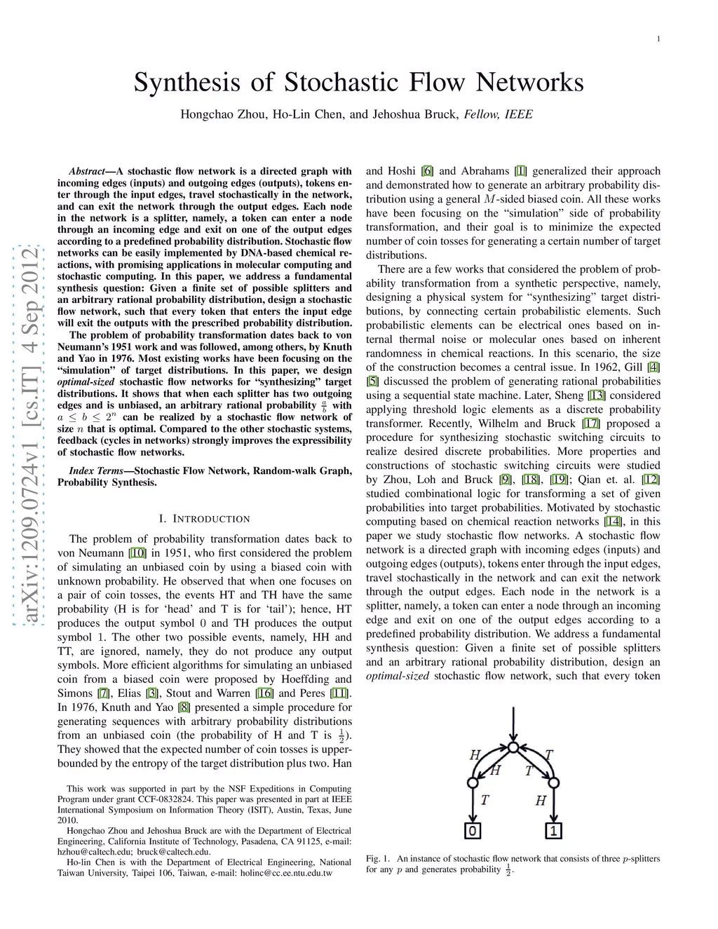 Synthesis of Stochastic Flow Networks