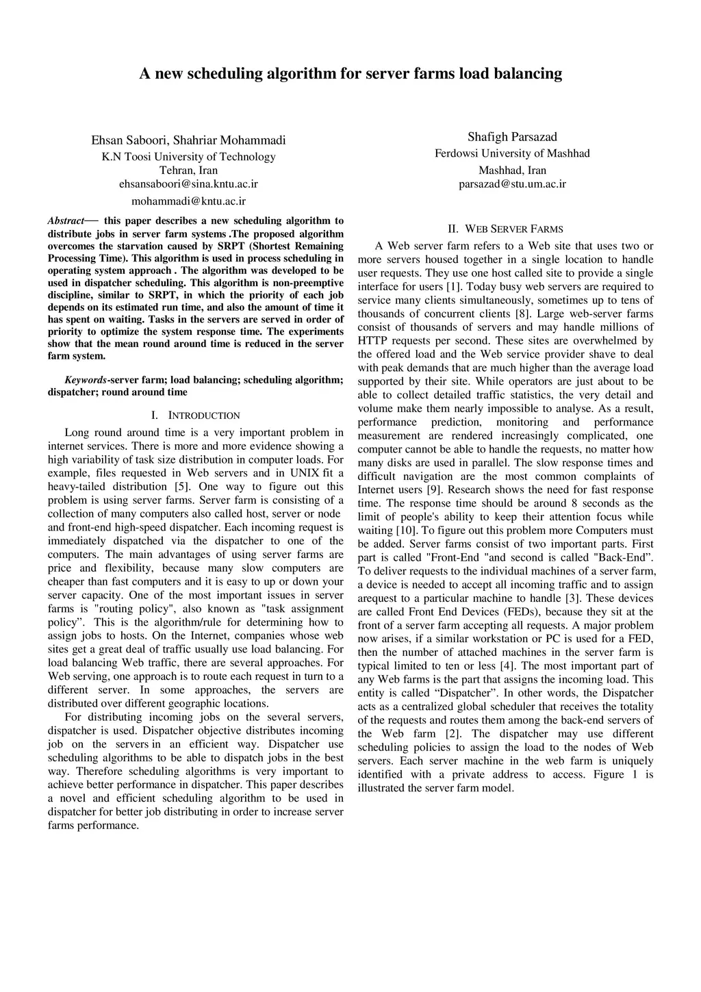 A new scheduling algorithm for server farms load balancing