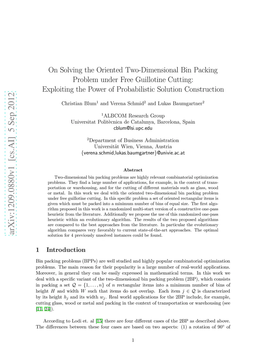 On Solving the Oriented Two-Dimensional Bin Packing Problem under Free