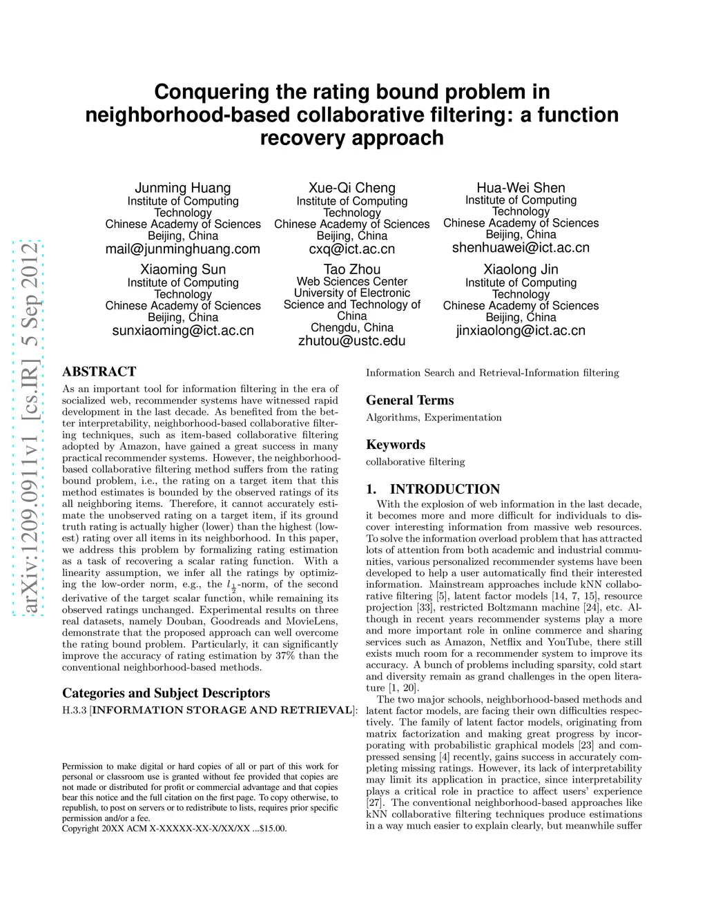 As an important tool for information filtering in the era of socialized web, recommender systems have witnessed rapid development in the last decade. As benefited from the better interpretability, neighborhood-based collaborative filtering techniques, such as item-based collaborative filtering adopted by Amazon, have gained a great success in many practical recommender systems. However, the neighborhood-based collaborative filtering method suffers from the rating bound problem, i.e., the rating on a target item that this method estimates is bounded by the observed ratings of its all neighboring items. Therefore, it cannot accurately estimate the unobserved rating on a target item, if its ground truth rating is actually higher (lower) than the highest (lowest) rating over all items in its neighborhood. In this paper, we address this problem by formalizing rating estimation as a task of recovering a scalar rating function. With a linearity assumption, we infer all the ratings by optimizing the low-order norm, e.g., the -norm, of the second derivative of the target scalar function, while remaining its observed ratings unchanged. Experimental results on three real datasets, namely Douban, Goodreads and MovieLens, demonstrate that the proposed approach can well overcome the rating bound problem. Particularly, it can significantly improve the accuracy of rating estimation by 37% than the conventional neighborhood-based methods.