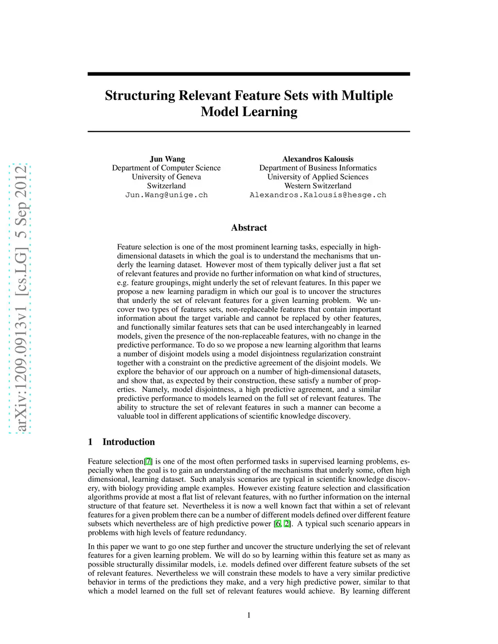 Structuring Relevant Feature Sets with Multiple Model Learning