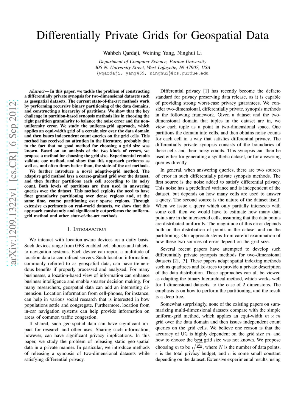 Differentially Private Grids for Geospatial Data