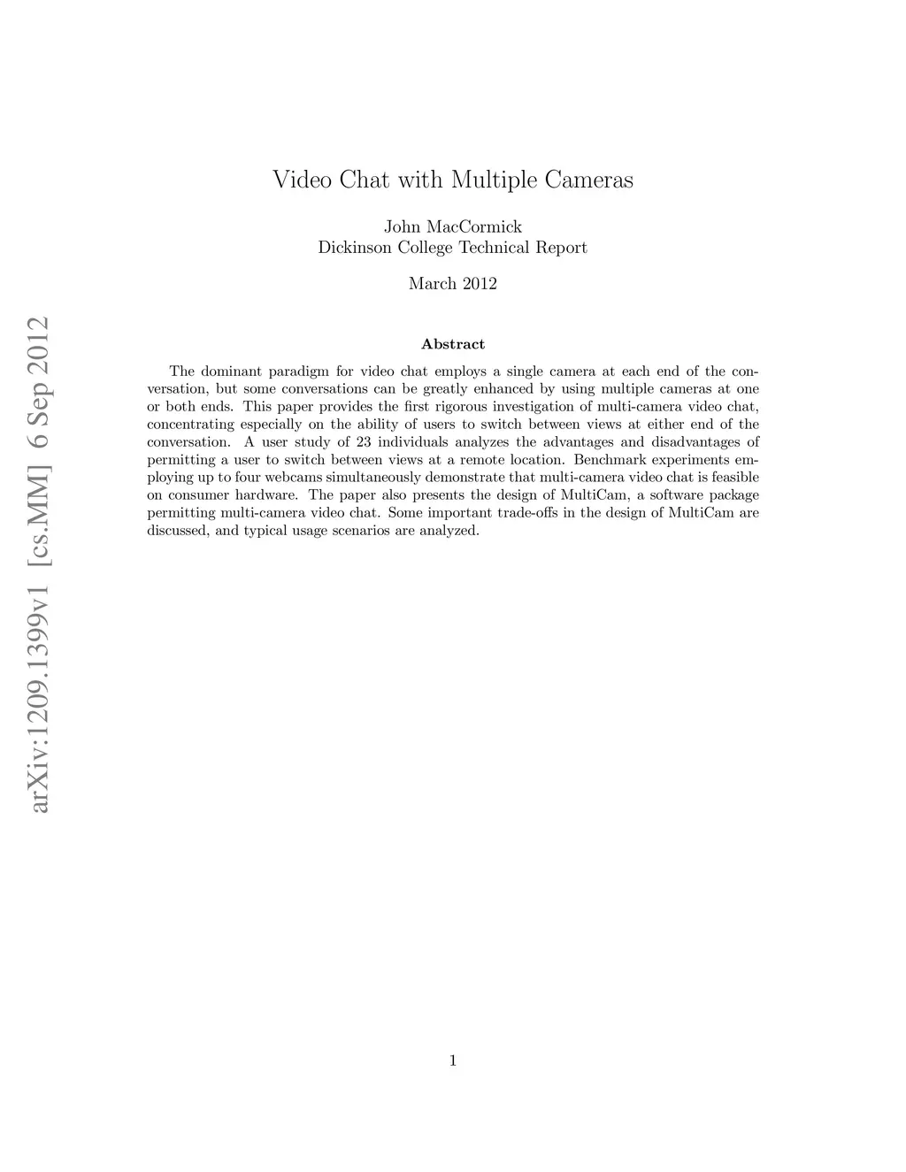 The dominant paradigm for video chat employs a single camera at each end of the conversation, but some conversations can be greatly enhanced by using multiple cameras at one or both ends. This paper provides the first rigorous investigation of multi-camera video chat, concentrating especially on the ability of users to switch between views at either end of the conversation. A user study of 23 individuals analyzes the advantages and disadvantages of permitting a user to switch between views at a remote location. Benchmark experiments employing up to four webcams simultaneously demonstrate that multi-camera video chat is feasible on consumer hardware. The paper also presents the design of MultiCam, a software package permitting multi-camera video chat. Some important trade-offs in the design of MultiCam are discussed, and typical usage scenarios are analyzed.