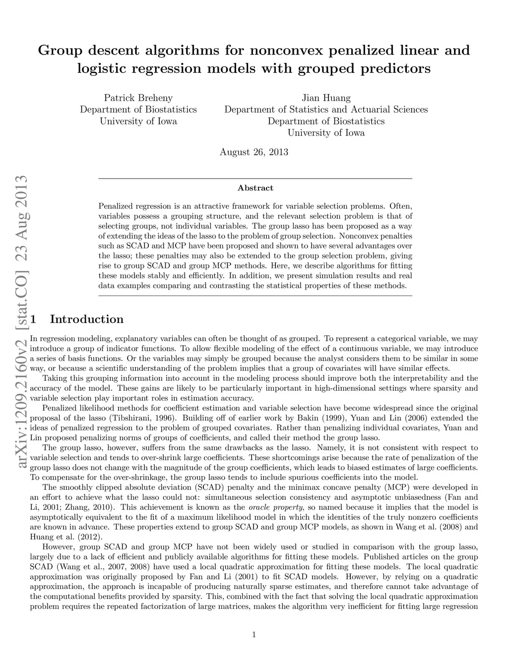Penalized regression is an attractive framework for variable selection problems. Often, variables possess a grouping structure, and the relevant selection problem is that of selecting groups, not individual variables. The group lasso has been proposed as a way of extending the ideas of the lasso to the problem of group selection. Nonconvex penalties such as SCAD and MCP have been proposed and shown to have several advantages over the lasso; these penalties may also be extended to the group selection problem, giving rise to group SCAD and group MCP methods. Here, we describe algorithms for fitting these models stably and efficiently. In addition, we present simulation results and real data examples comparing and contrasting the statistical properties of these methods.