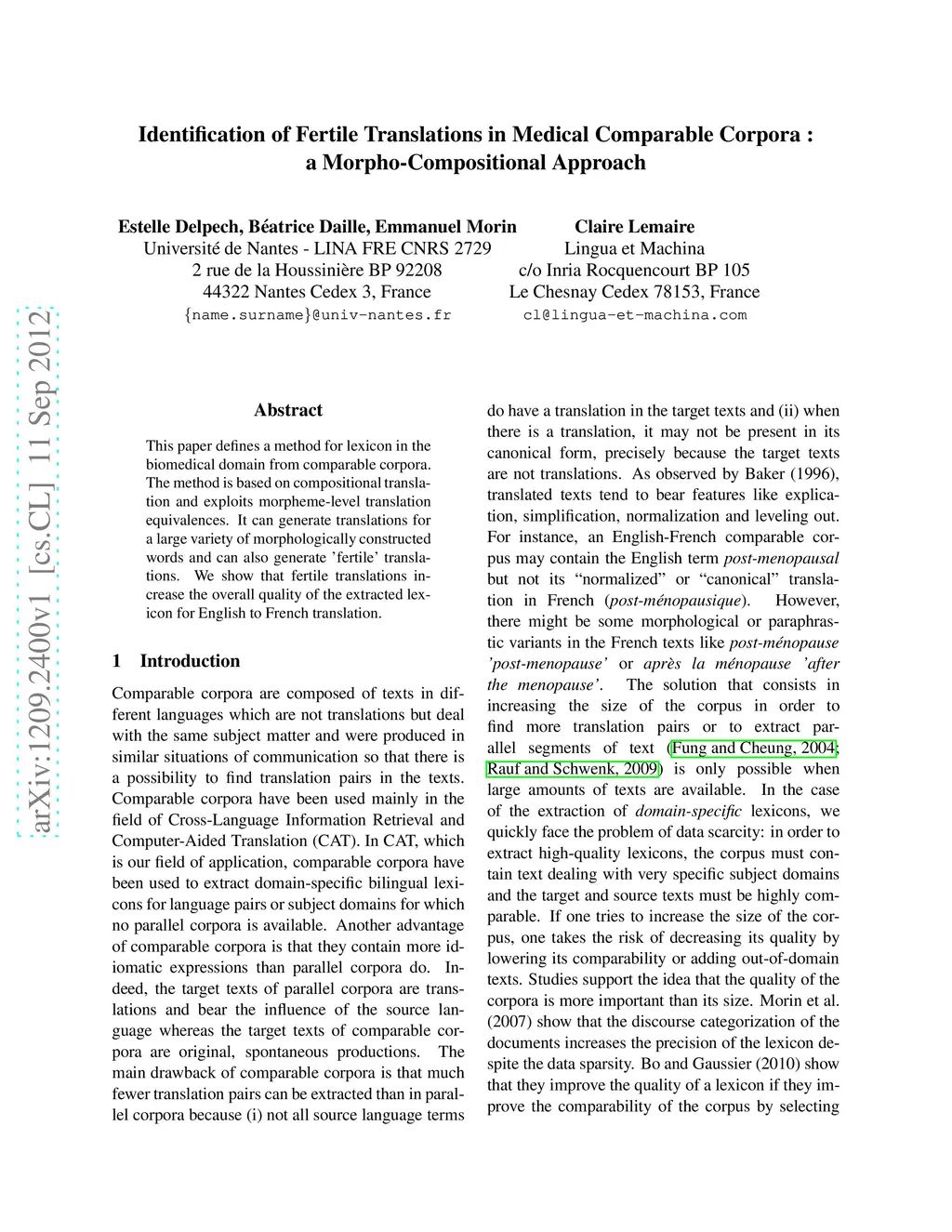 Identification of Fertile Translations in Medical Comparable Corpora: a